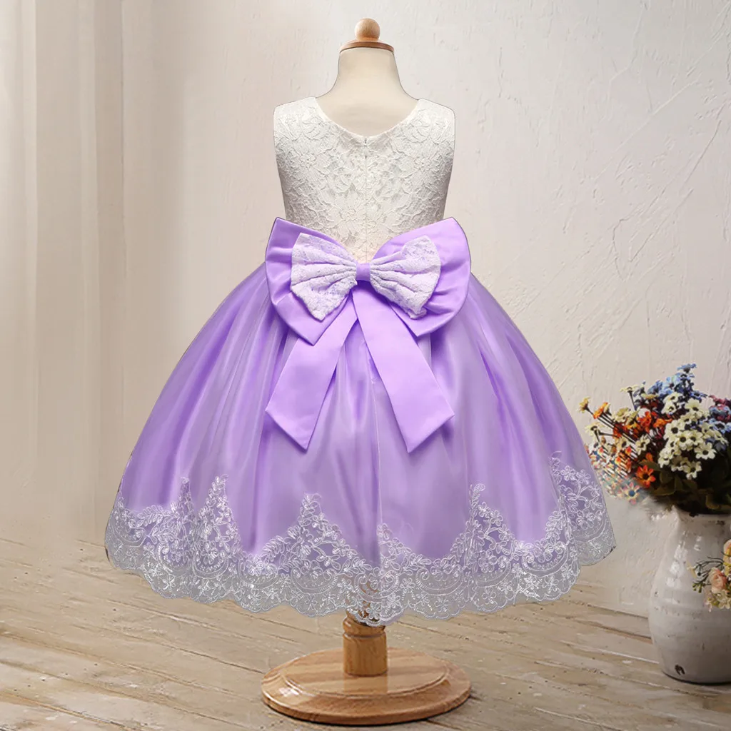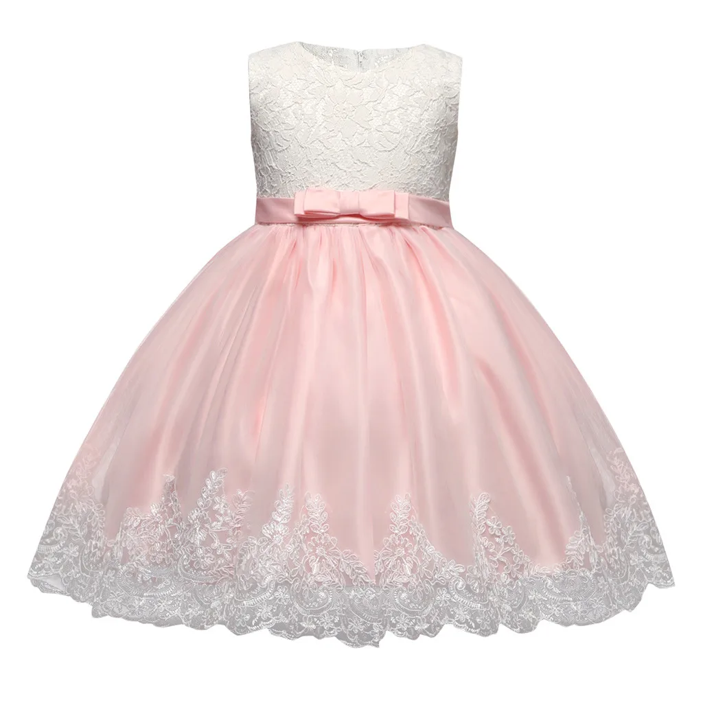 Дети, Девочки Кружевное торжественное платье принцессы с бантом для свадьбы
