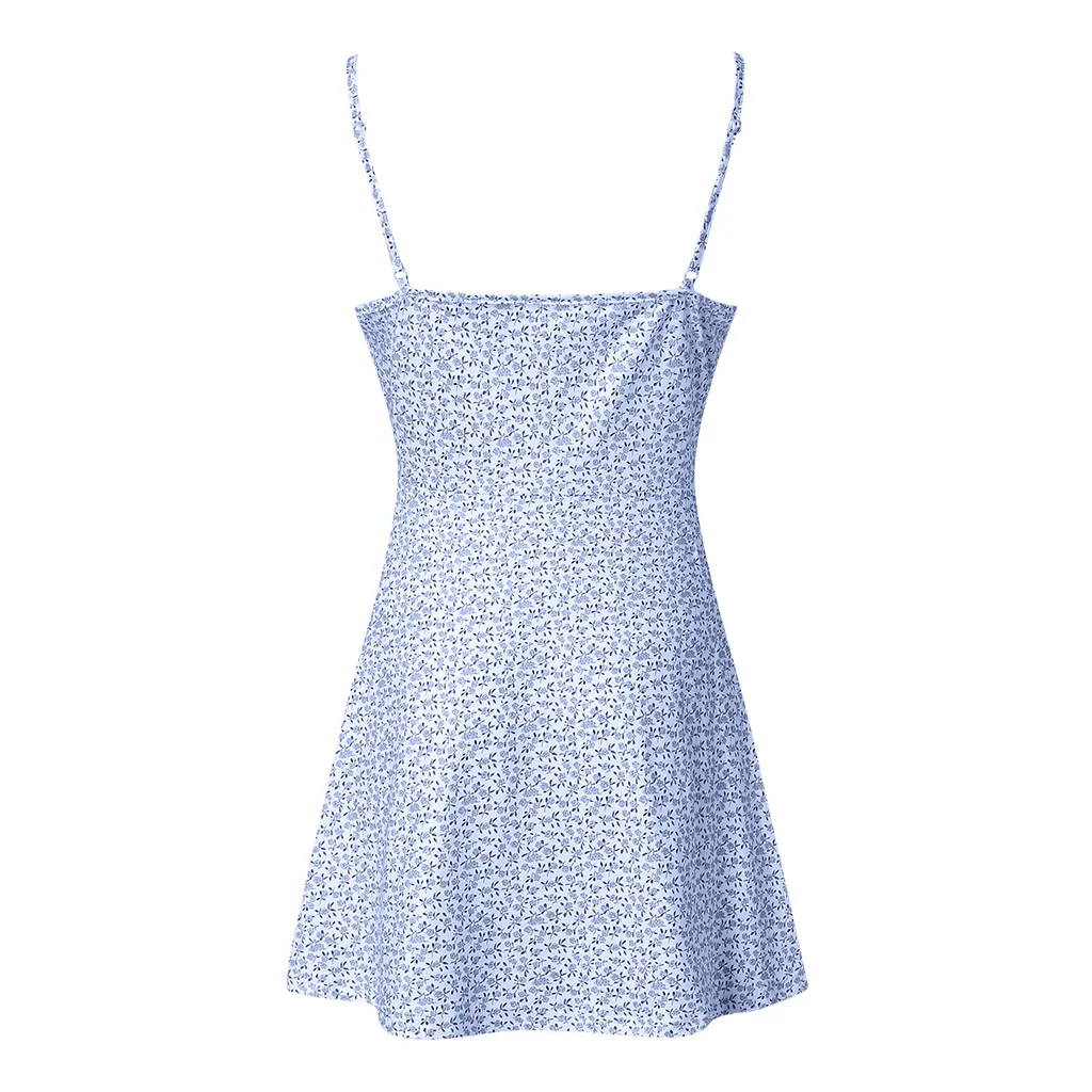 Платье женское короткое с цветочным принтом, пикантный мини-сарафан-трапеция с V-образным вырезом без рукавов, с принтом в стиле колор блок, на лето