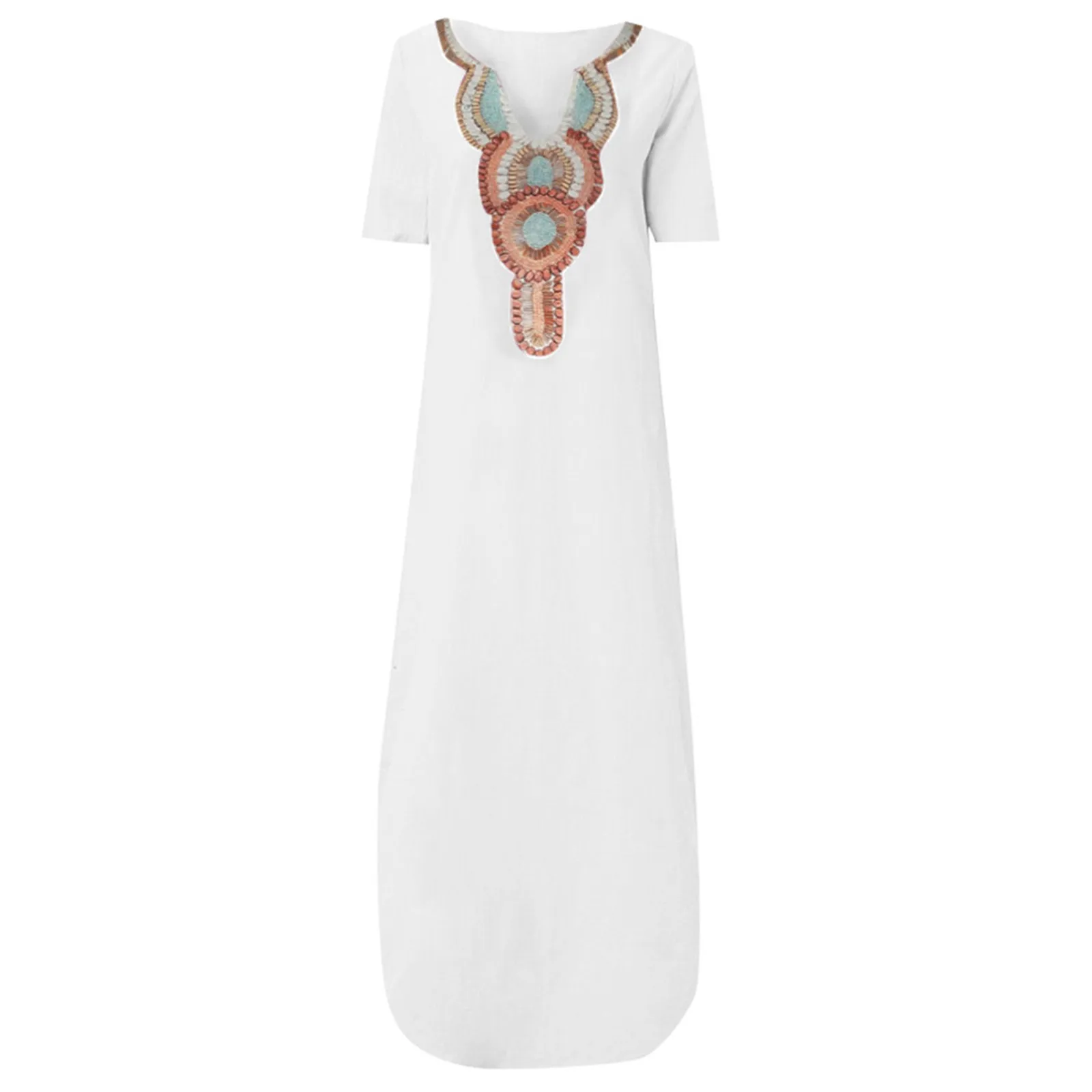 Женский Сарафан Макси, богемное белое платье с цветочным принтом, V-образным вырезом и Боковым Разрезом, модель 2021