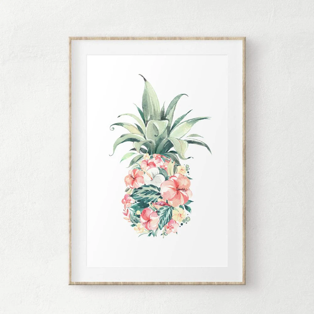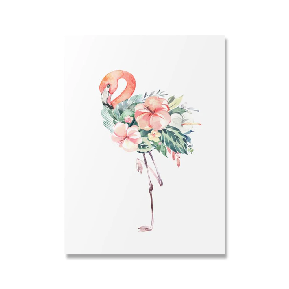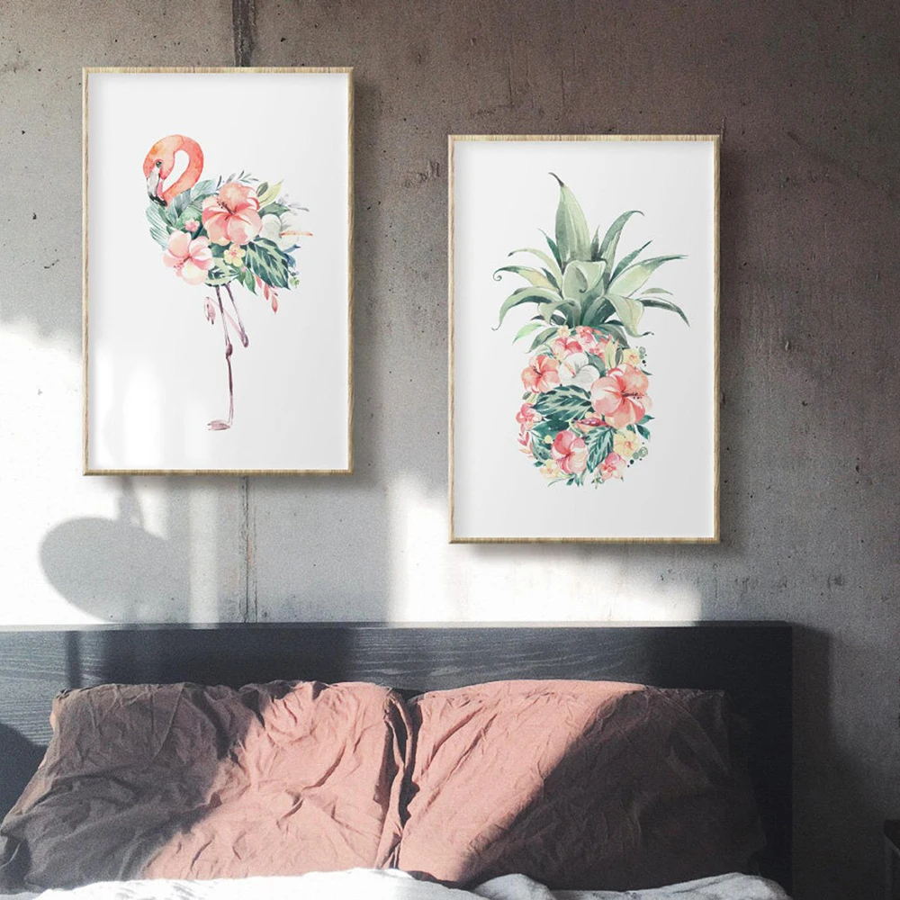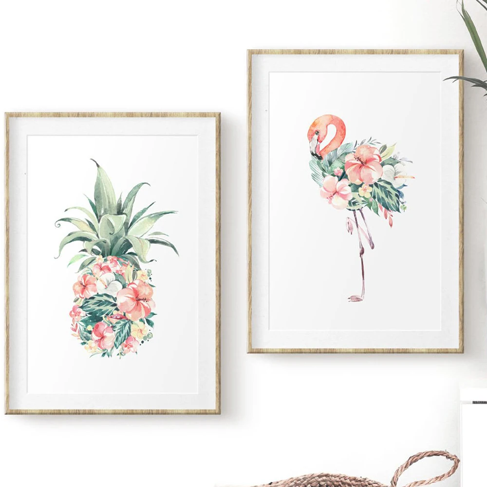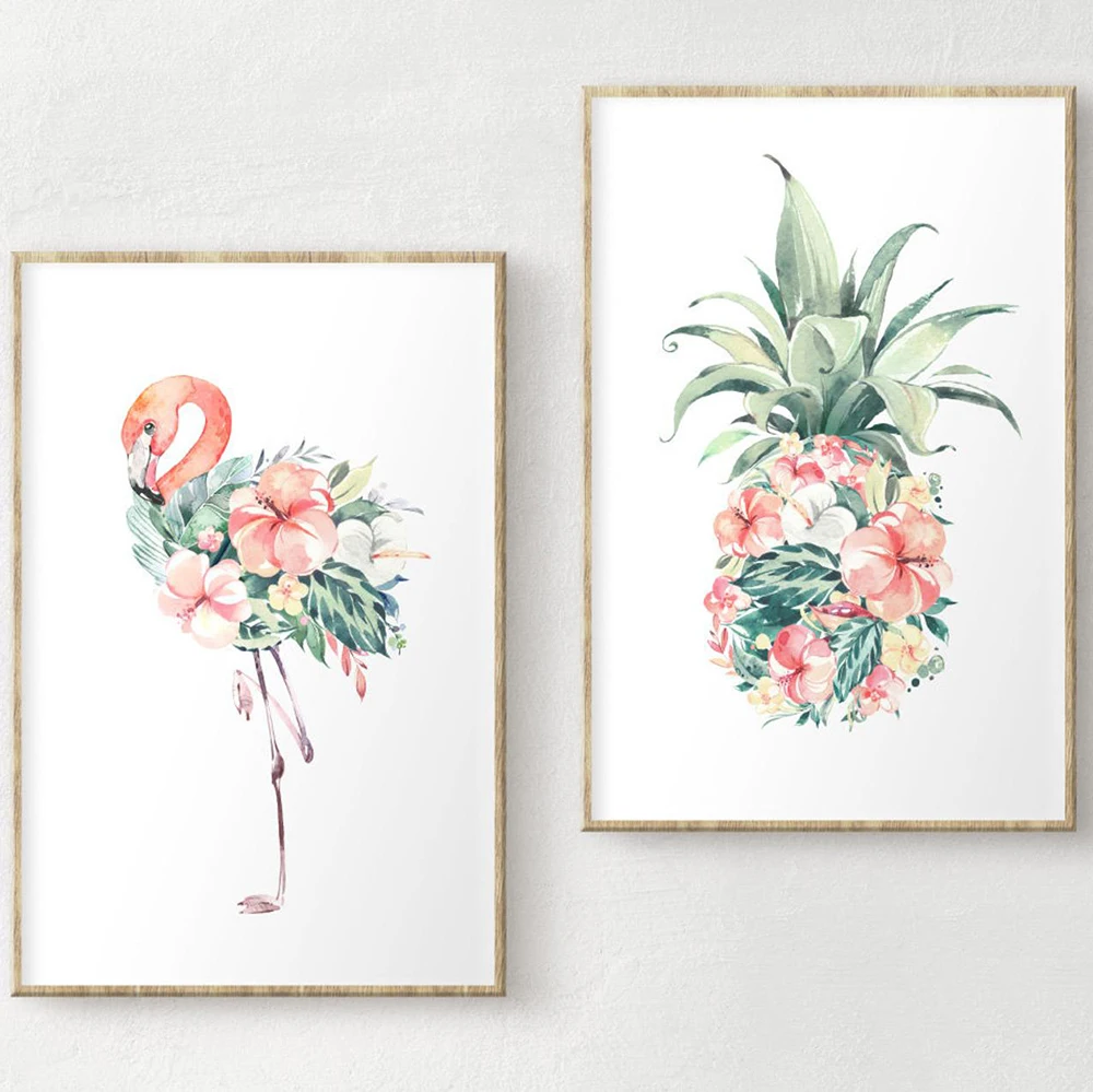 Скандинавский постер с фламинго и ананасами и цветами, холст с рисунком, летняя Минималистичная Настенная картина, домашний декор