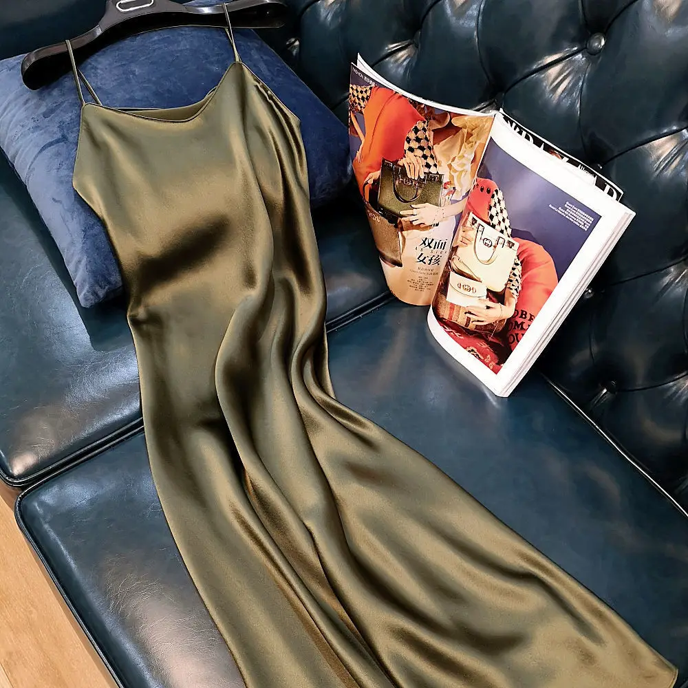Женское длинное платье-комбинация из искусственного шелка, элегантный Однотонный сарафан большого размера S 4XL, 2021