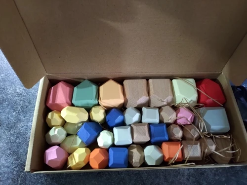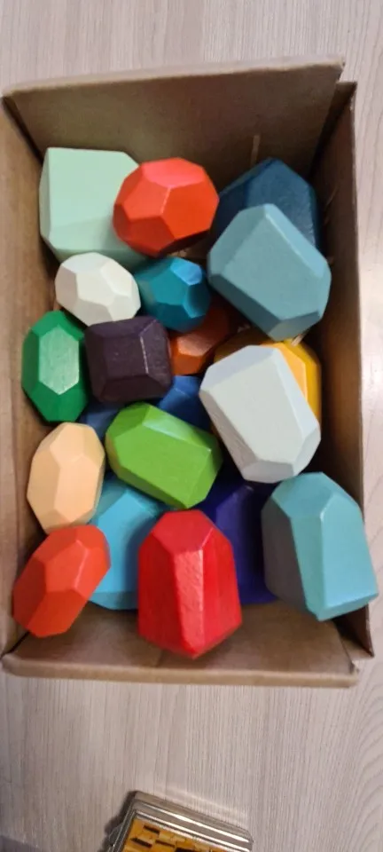 Las piedras son más pequeñas de lo que pensaba, u sólo vienen en una caja de cartón difícil de abrir y cerrar.Hemos echado de menos una bolsita para guardar