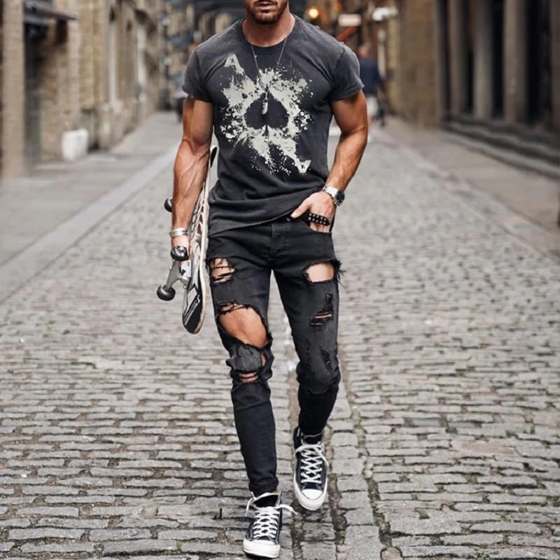 Футболка мужская с принтом черепа, короткий рукав, готическая одежд...