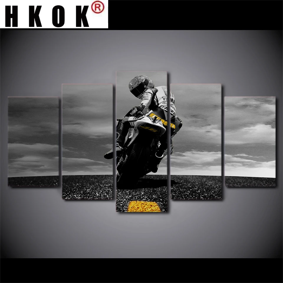 Модульный постер HKOK, картина, искусство, холст, рамка, HD печать, современные 5 панелей, Мотогонки, гостиная, домашний декор, настенные картины