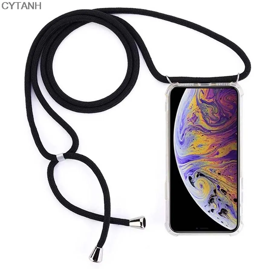 Прозрачный мягкий чехол из ТПУ для телефона, шнурок через плечо, ре...