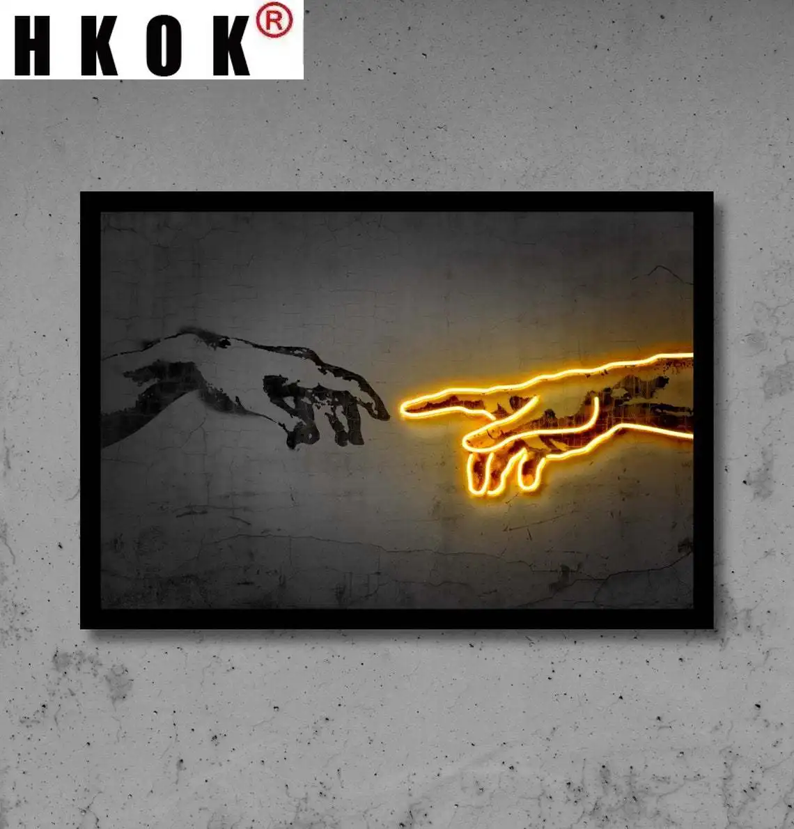 HKOK Абстрактная живопись канва картина, печатный плакат создание Адама неоновая подсветка Куадрос диван стены в искусстве домашний декор для Гостиная