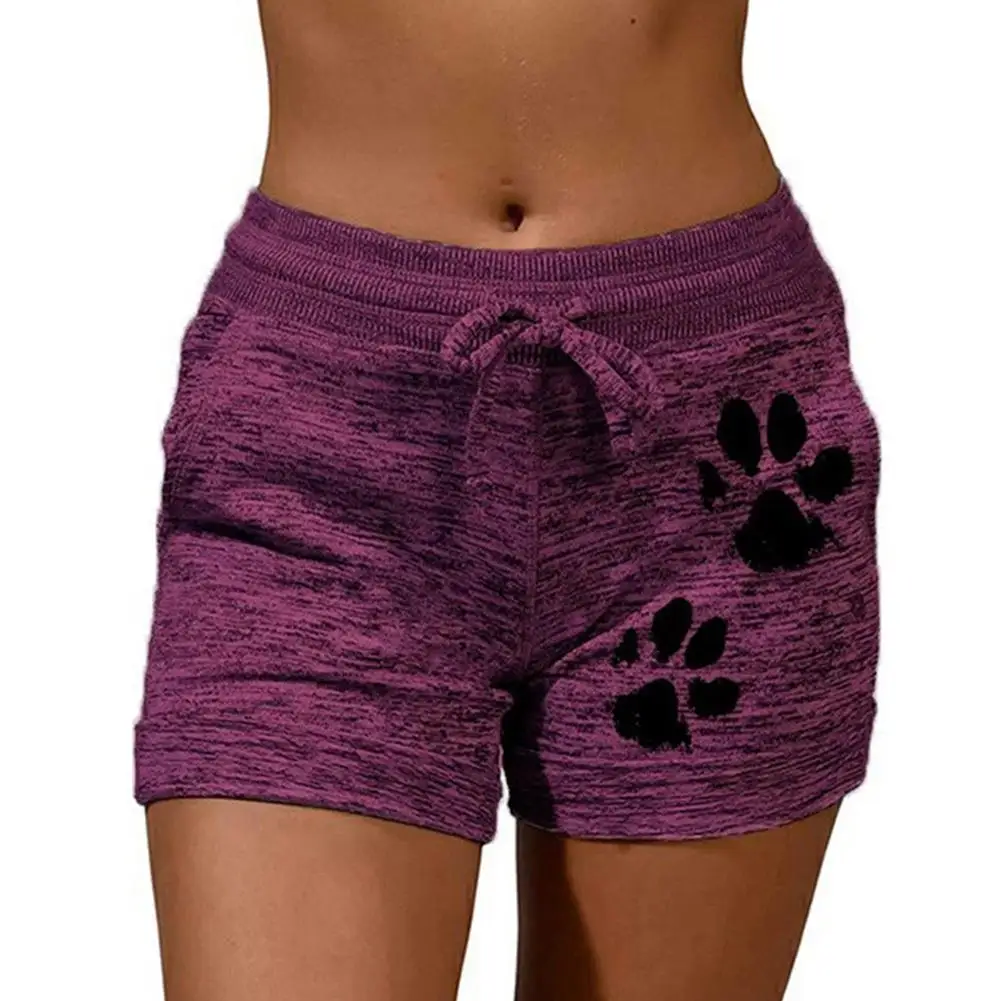 Женские шорты с завышенной талией, быстросохнущие эластичные спортивные шорты с завязками и отпечаток когтя кошками, женская одежда, велошорты, 2021
