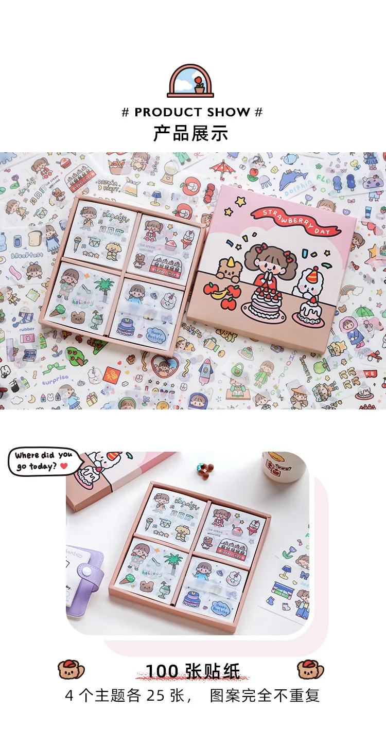 Наклейки декоративные, 100 шт., наклейки из бумаги васи шт.