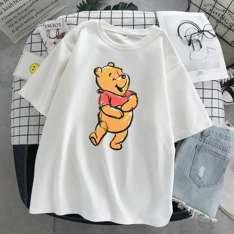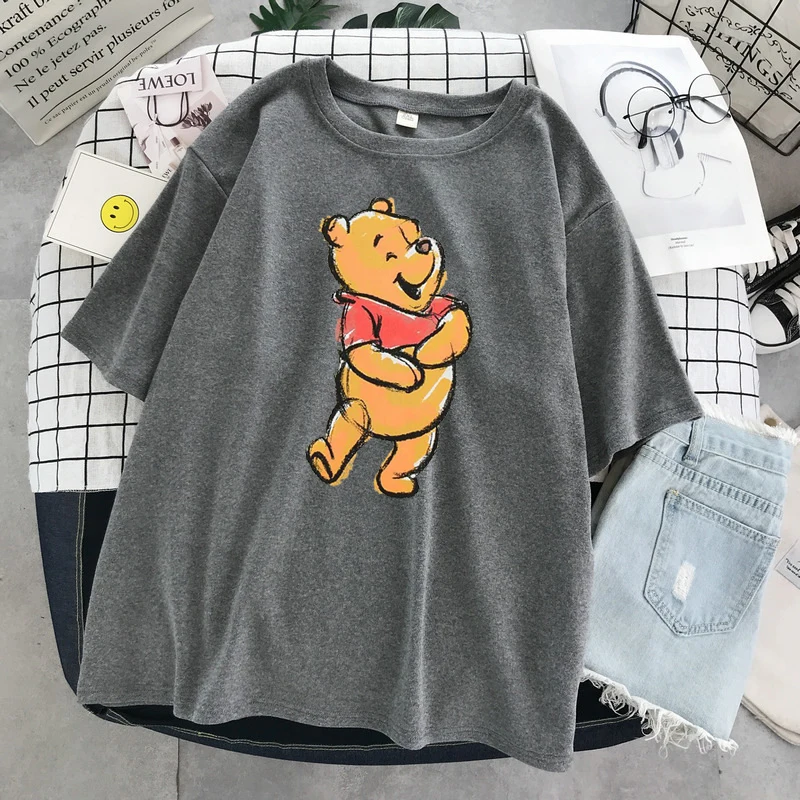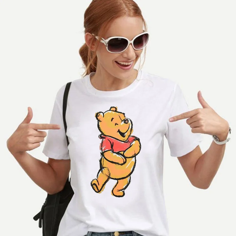 Футболка женская большого размера с изображением Винни, пуха, медведя, улззанга, с героями мультфильмов