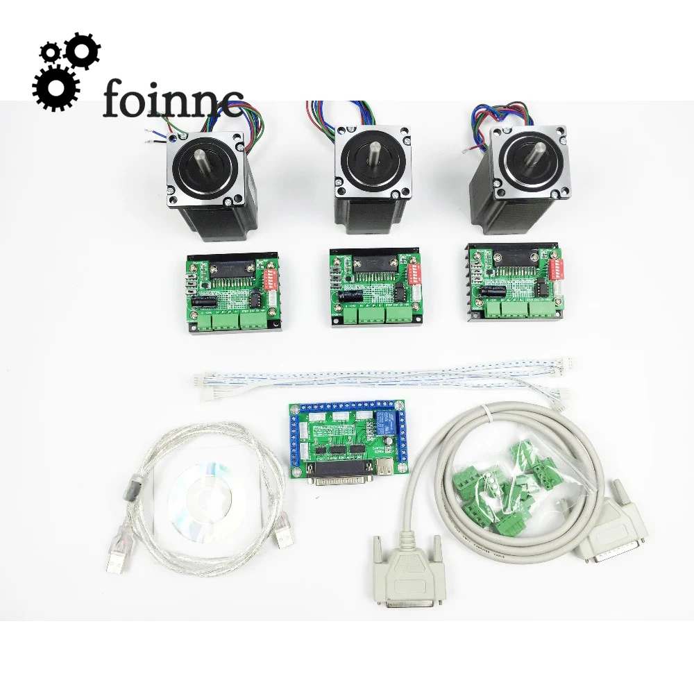 Зеленая плата с преобразованием частоты 5 aixs + 3 шт. TB6560 + 3 шт. Nema23 2,2 нм шаговый двигатель, включая некоторые аксессуары, 1 шт.