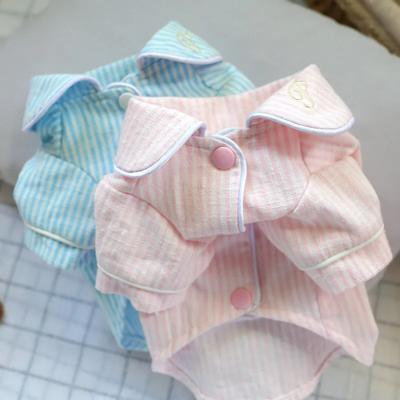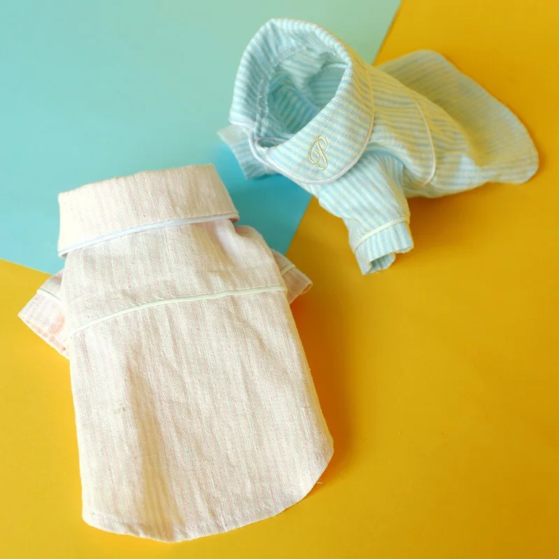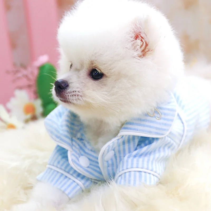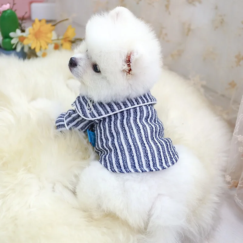 Одежда для домашних животных, полосатая пижама из хлопка и льна, одежда для собак и кошек, одежда для маленьких собак, кошек, щенков, костюм для мопса, куртка Чихуахуа, Тедди