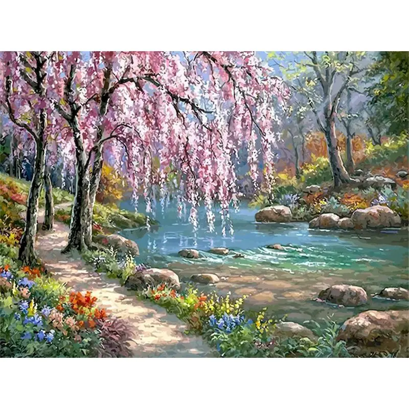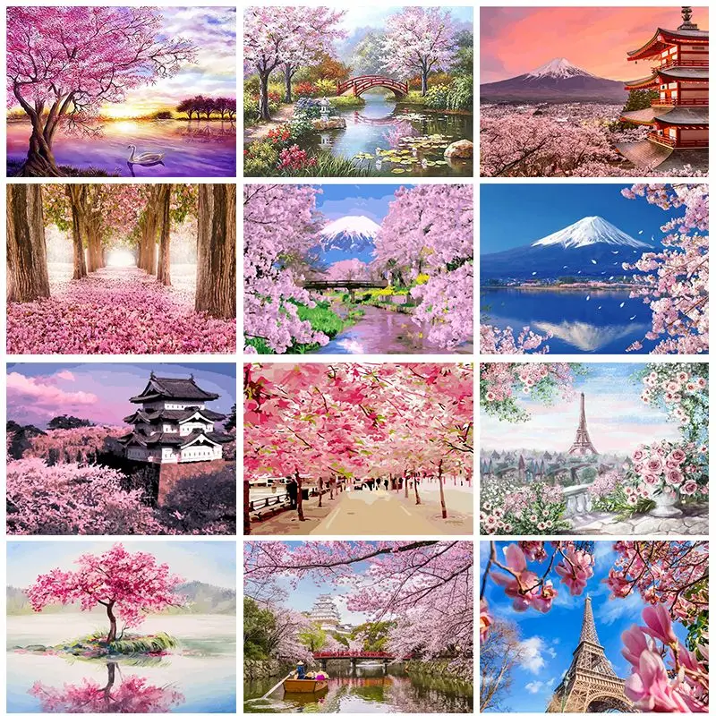Набор для алмазной живописи 5D сделай сам, полное покрытие, литой клей, пейзаж цветущей вишни, с AB дрелью, ручная работа, художественный подарок, украшение для дома
