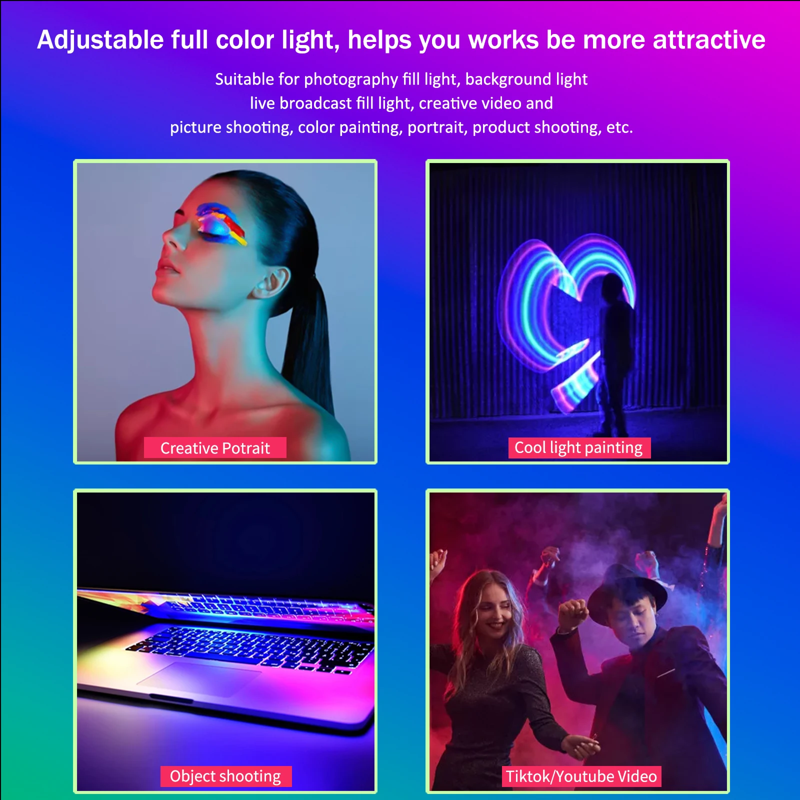 Работает так, как предназначено, свет не очень сильный, поэтому вам нужно быть около 10 футов от модели, чтобы свет мог показать сильный на фото. В противном случае товар не подходит, он очень легкий и портативный!