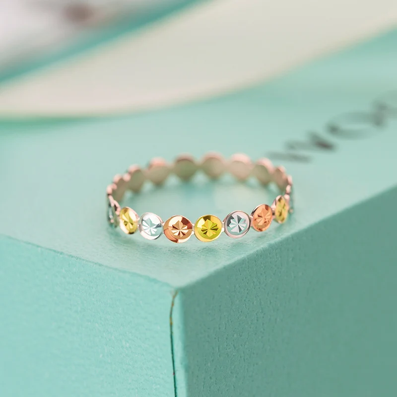 Женское кольцо из чистого золота 18 К, разноцветное кольцо с надписью Sky stars, подарок для девушки, Прямая поставка