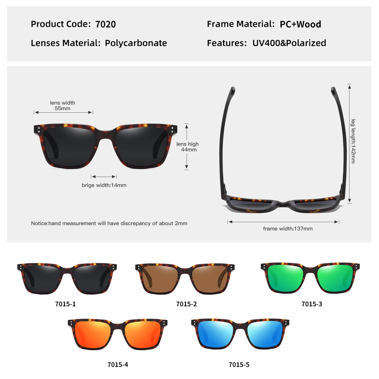 Женские деревянные солнцезащитные очки с поляризацией, S5029C