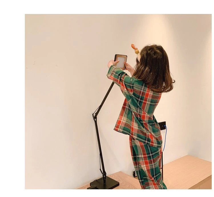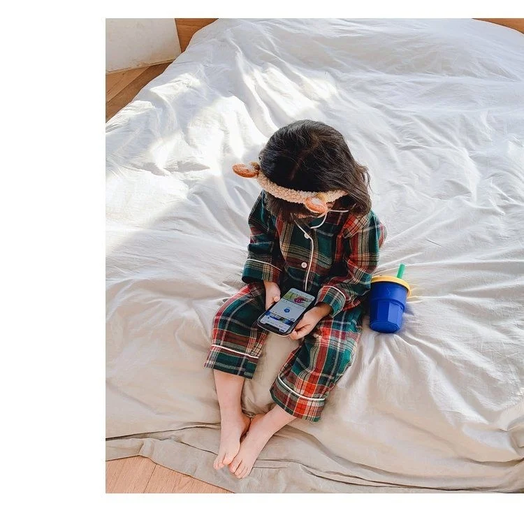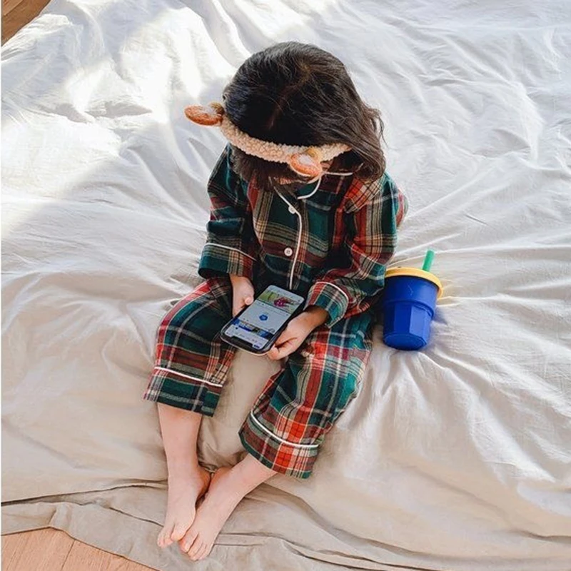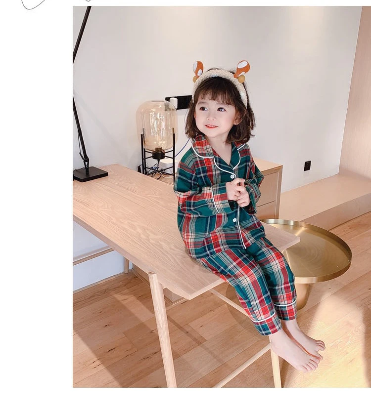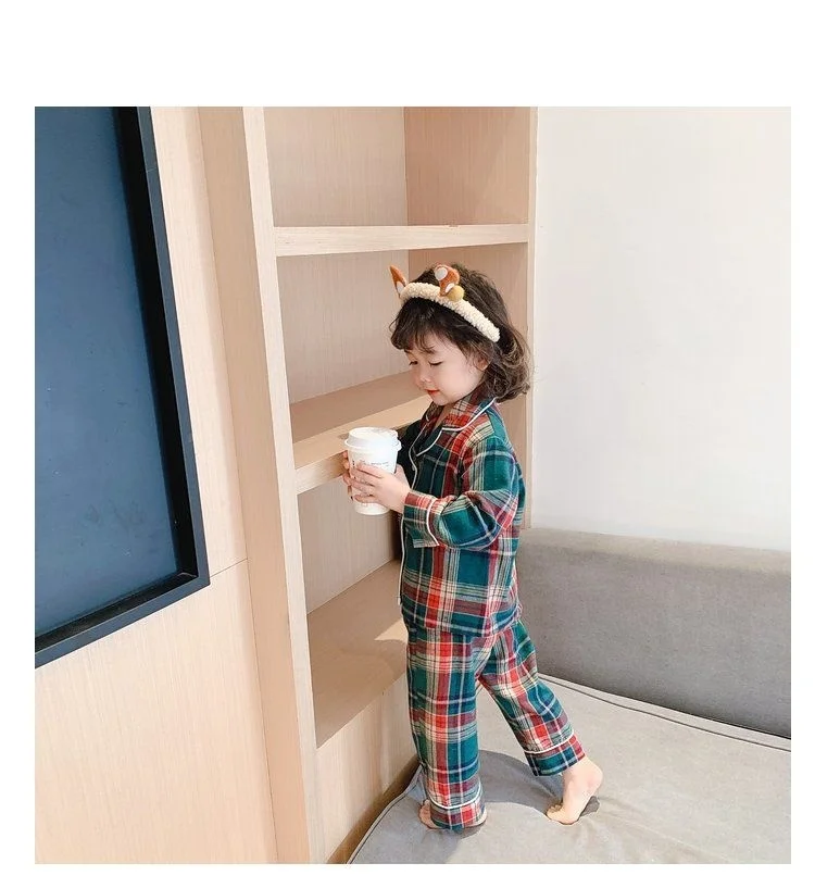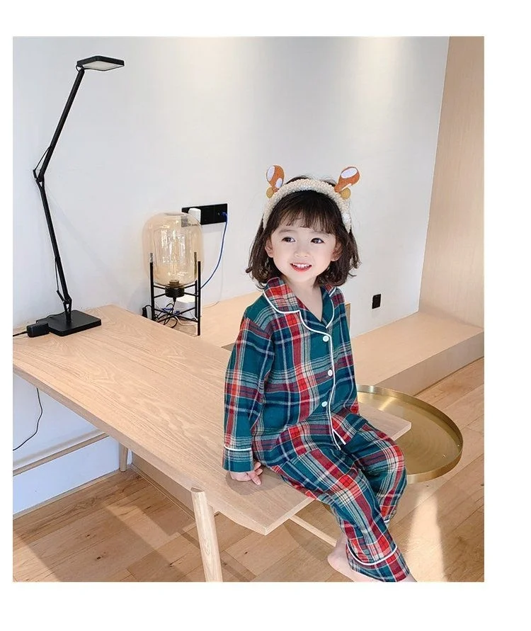 Пижамный комплект для девочек, с отложным воротником, 2 цвета, клетчатая Пижама контрастных цветов, кардиган, одежда для сна, детская одежда