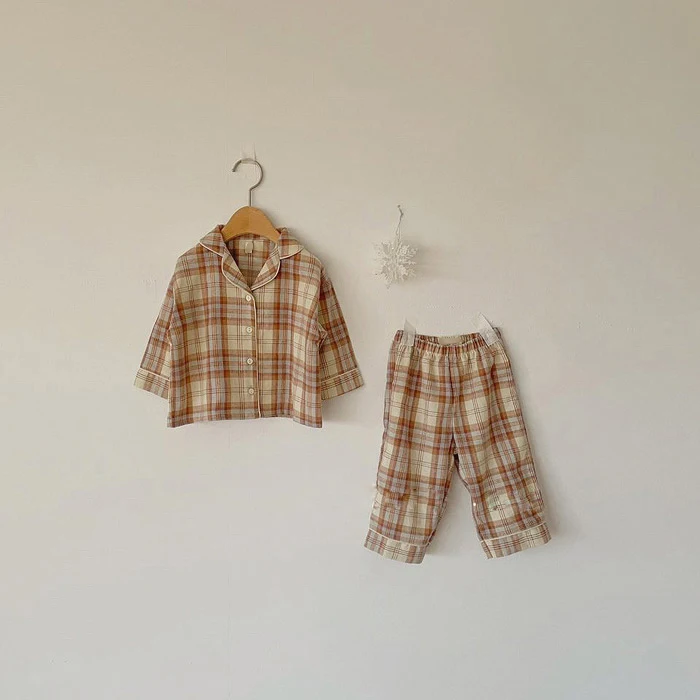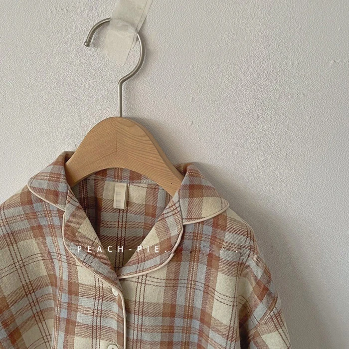 Пижамные комплекты с отложным воротником для девочек, 2 цвета, пижамный комплект в клетку контрастных цветов для малышей, кардиган, одежда для сна, детская одежда
