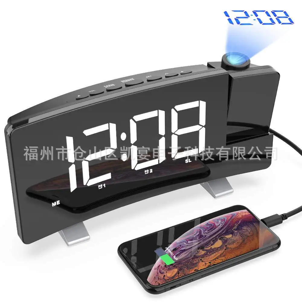 Новинка, Радиобудильник с USB-зарядкой, часы с постоянной проекцией, изогнутые настольные часы с большим экраном