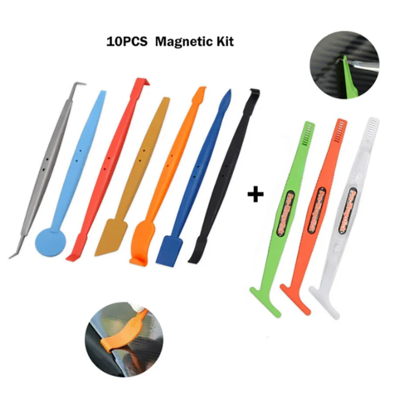 Продукт: комплект с ракелем для упаковки автомобиляМатериал: пластик, магнитПосылка включает в себя:Как вы выбираетеОсобенности:1. Мощная магнитная палочка для обертывания: скрытый сильный магнит внутри виниловая палка Ракель помогает обертывать более эффективно и удобно, и трудно потерять.2. Маленький корпус подходит для большего количества углов: наш скребок удобно, легко носить с собой и идеально подходит для небольших кривых зон.3,18 углов и различной твердости отвечают вашим многим потребностям. Просто Следуйте указаниям и контурам, сделайте виниловые наклейки более гладкими, не повреждая их.4. Эффективное удивительное сочетание. Возьмите скребок, чтобы работать красивее.5. Вспомогательный Инструмент Для Резки ножей/наклеек/обоев.