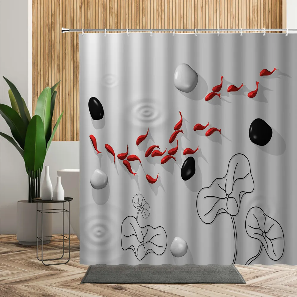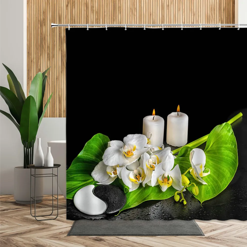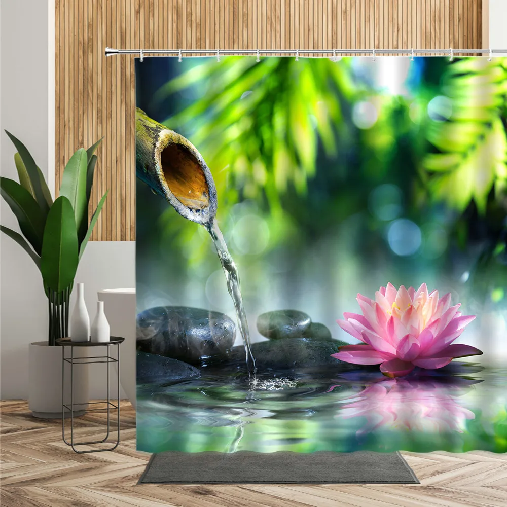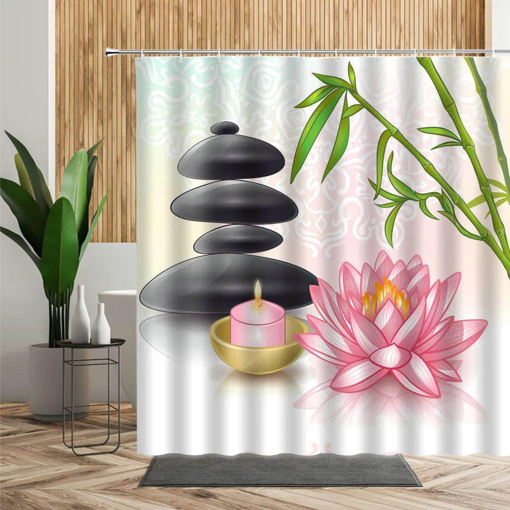 Занавеска для душа с 3D рисунком из черного дзен-камня, украшение для ванной комнаты из бамбука с цветочным принтом, подвесная ткань для китайского спа, занавески для ванной, водонепроницаемая ткань