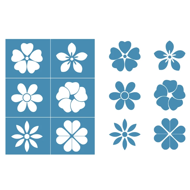 Повторное использование: Наши трафареты имеют клейкую заднюю часть, которая помогает предотвратить кровотечение краски. Трафареты многоразовые и моющиеся. Поэтому можно работать на различных поверхностях с использованием акриловых пигментов.