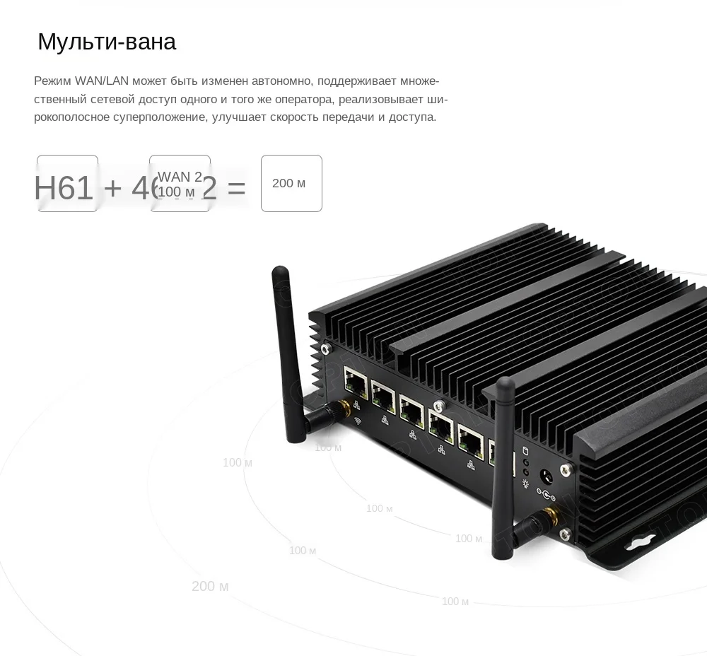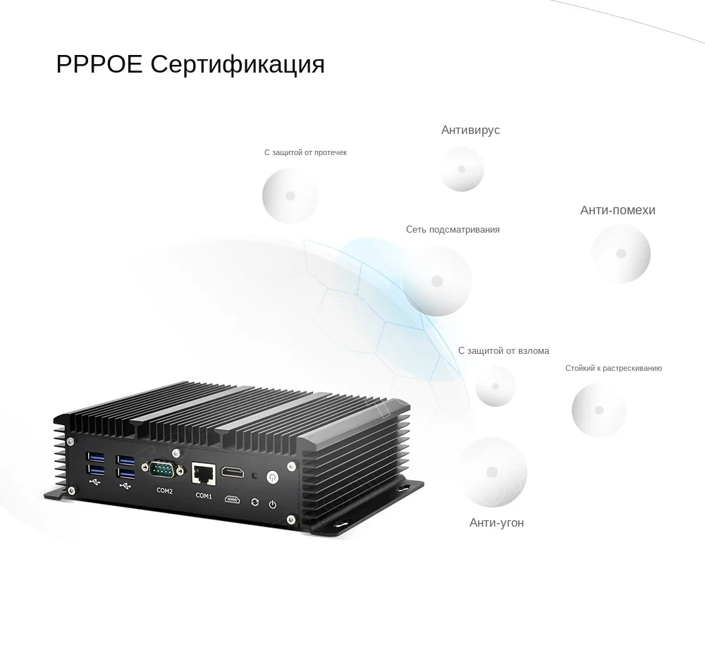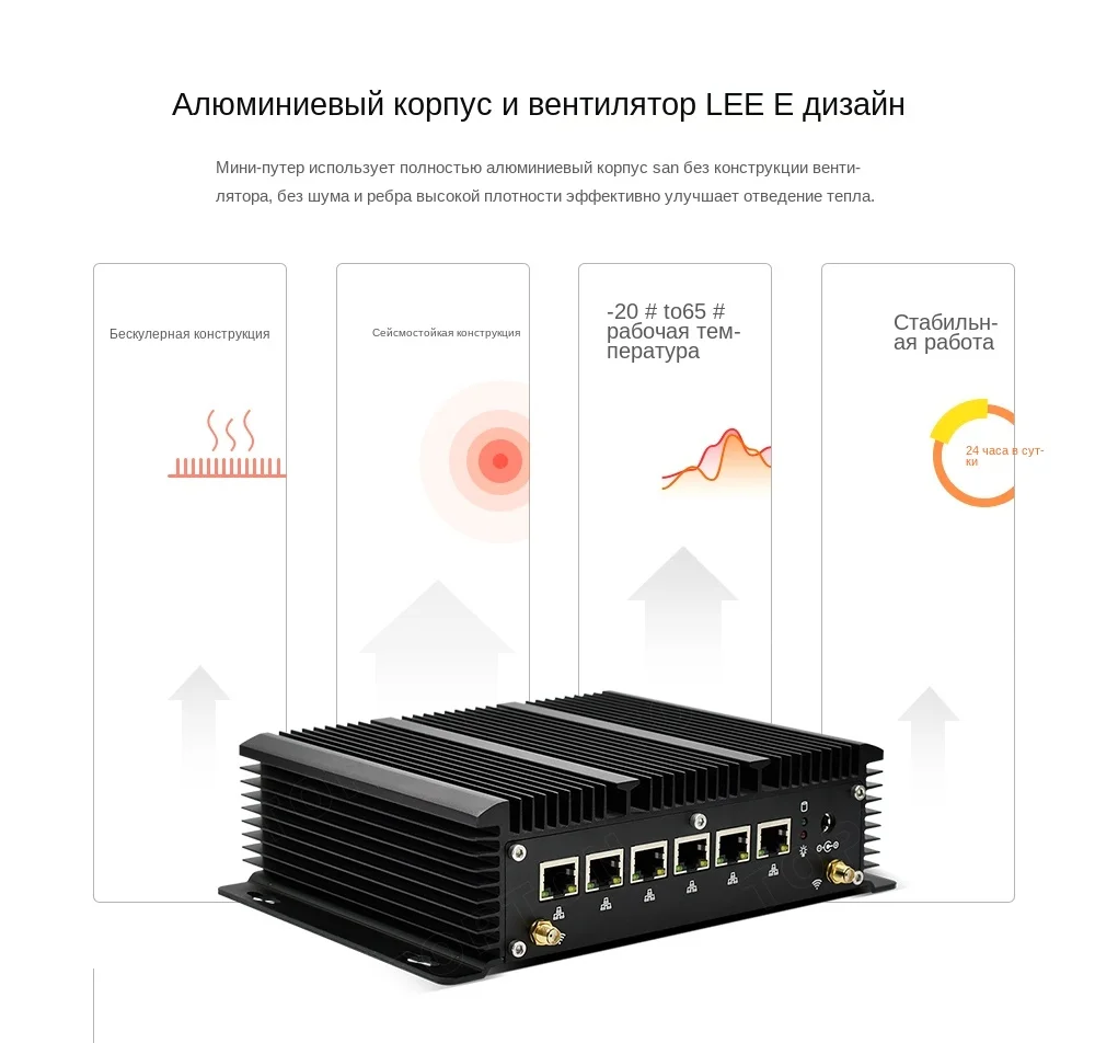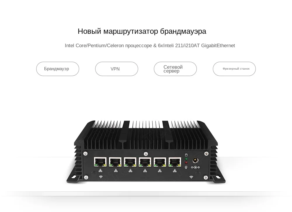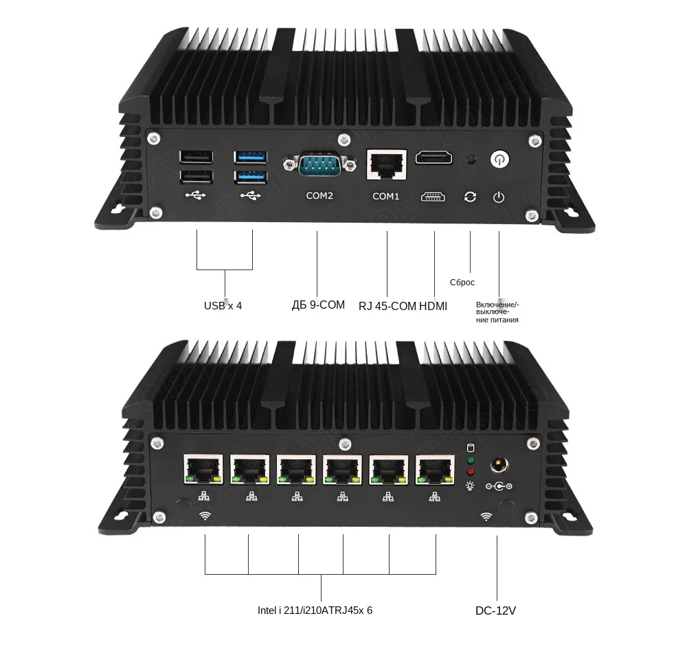-6 * Intel i211/i201-AT Gigabit RJ45 LANs и 2 * RS232 COM портов, Поддержка Windows, Linux и pfSense OS.