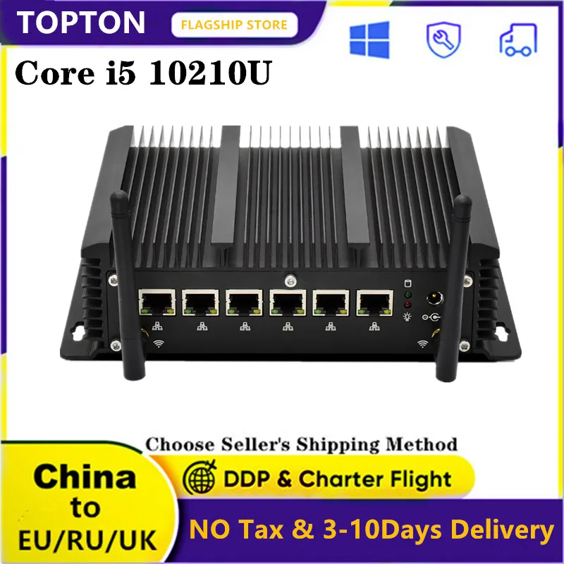 Topton безвентиляторный мини-ПК Intel Core i5 10210U 6 LAN i211AT Gigabit Ethernet AES-NI 4 * USB3.0 COM маршрутизатор брандмауэра pfSense компьютер