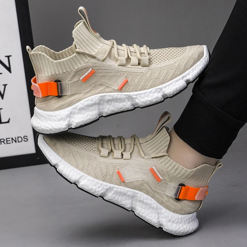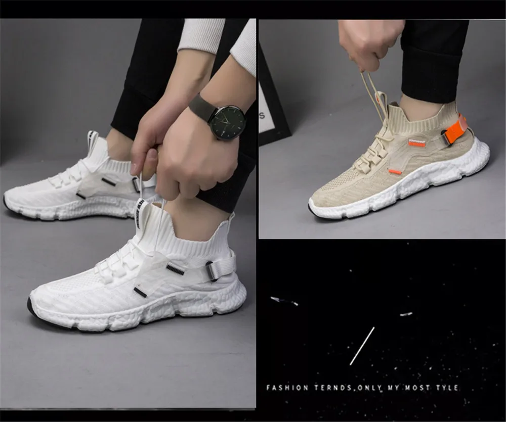 Кроссовки-носки мужские высокие, дышащая повседневная обувь без шну...