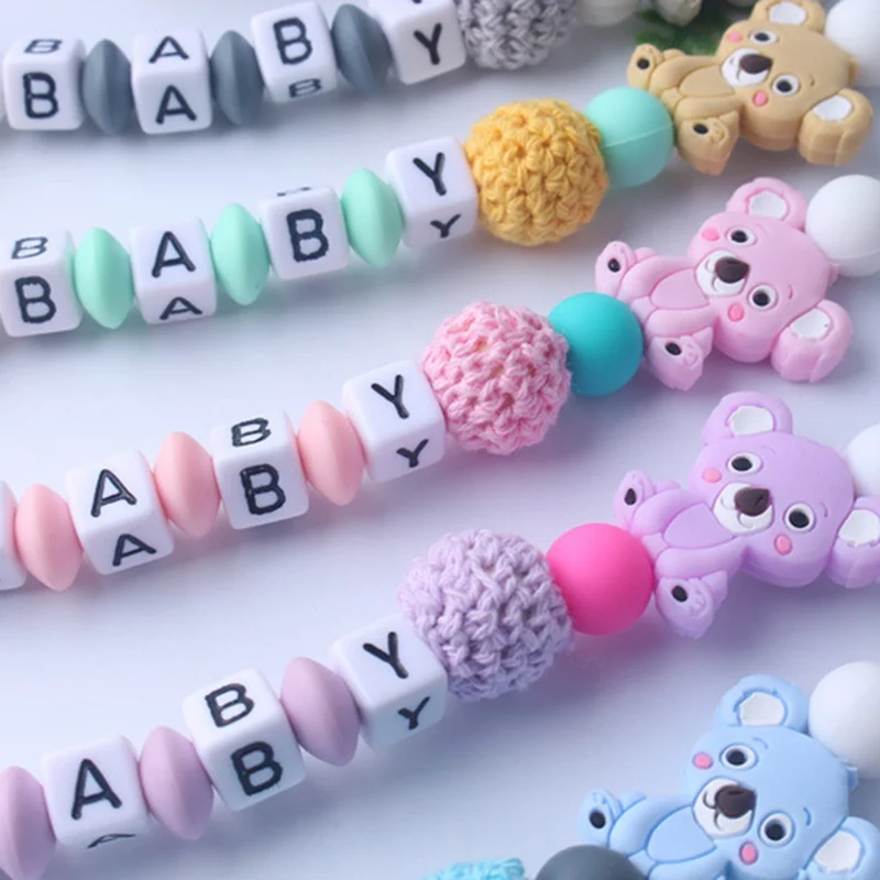 1 шт. зажимы для детской соски, бусины для вязания крючком, силиконовая корона, коала, цепочка для соски, держатель, подарок для детского душа, Силиконовые бусы для прорезывания зубов игрушки