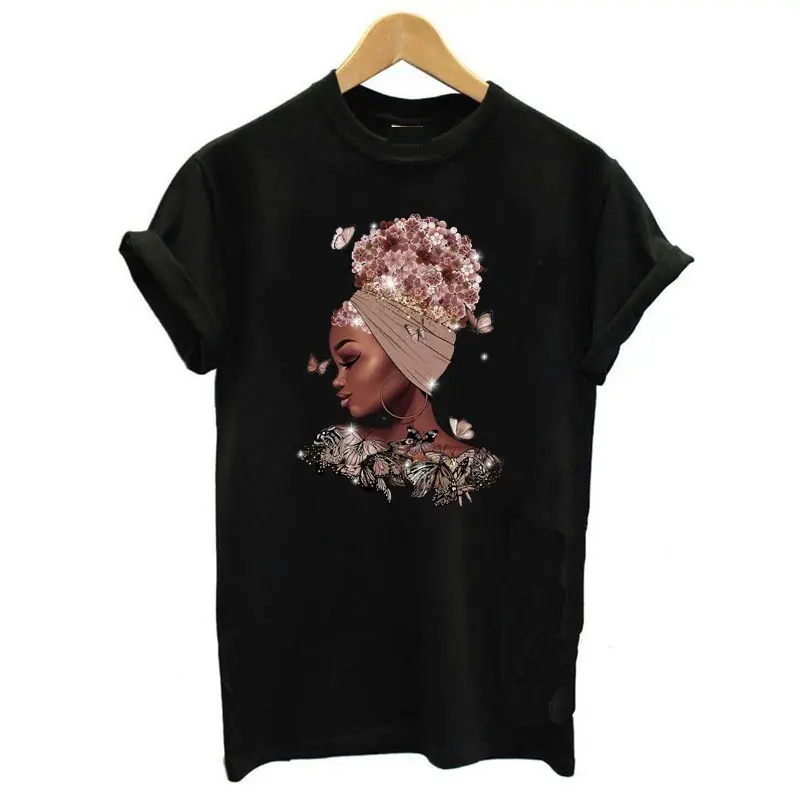 Женская футболка с принтом бабочек, цветов, меланина, королевы, Милая женская футболка, черная волшебная футболка для девушек, летние топы, футболки