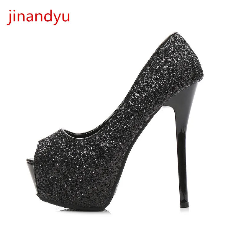 101214 см обувь на высоком каблуке и платформе Лоферы блестящая женская обувь черного цвета; Обувь с серебряными каблуками для женщин женские туфли-лодочки вечерние Свадебная обувь из флока; Женские свадебные туфли-лодочки