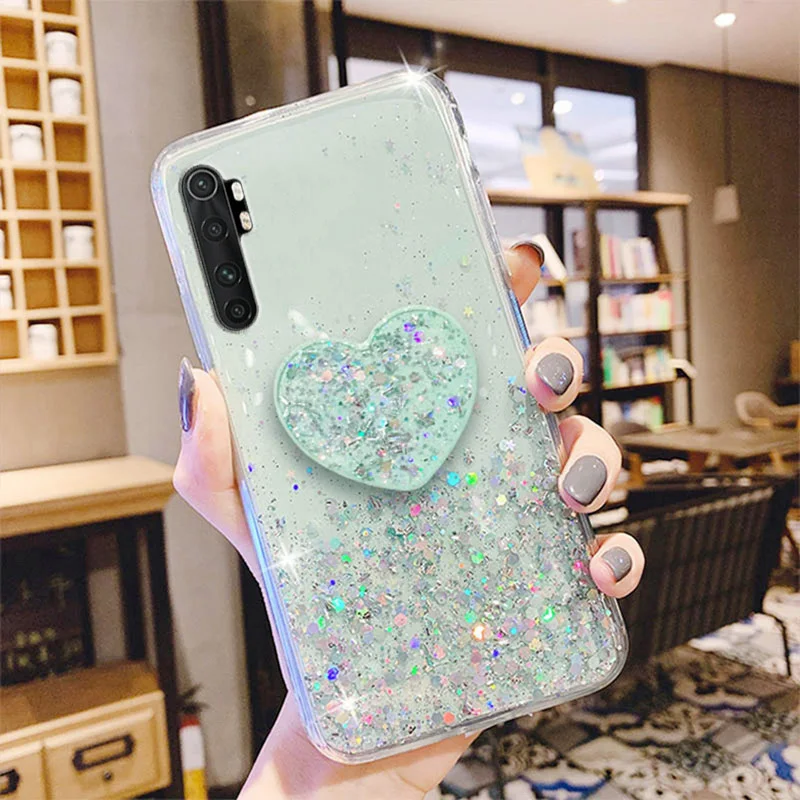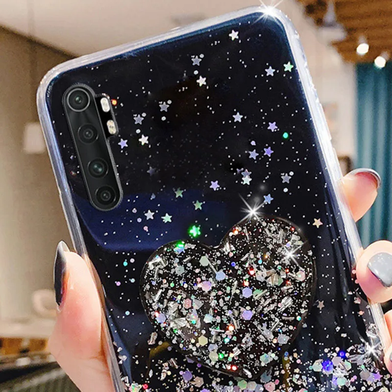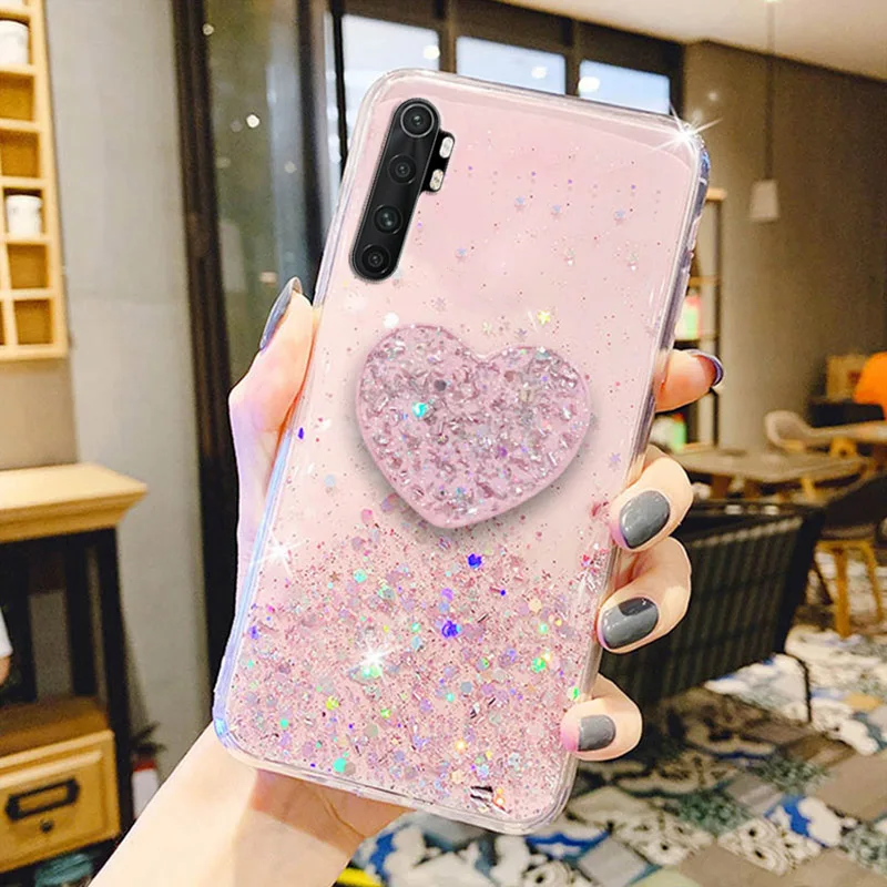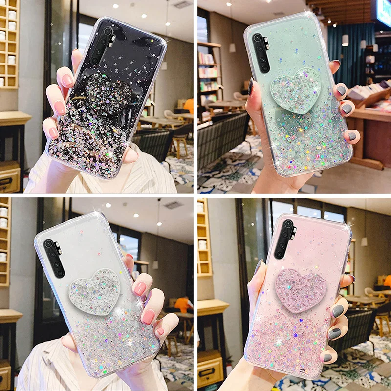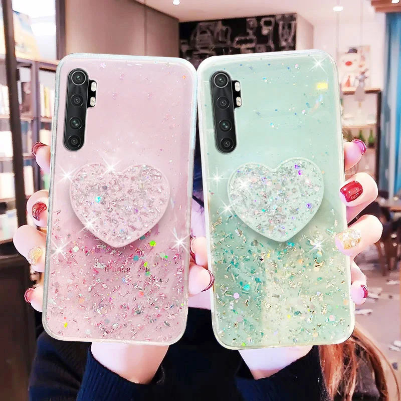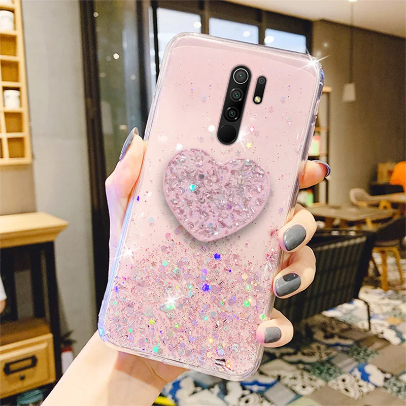 Блестящий чехол с держателем в виде сердца для Xiaomi Redmi 9, чехл...