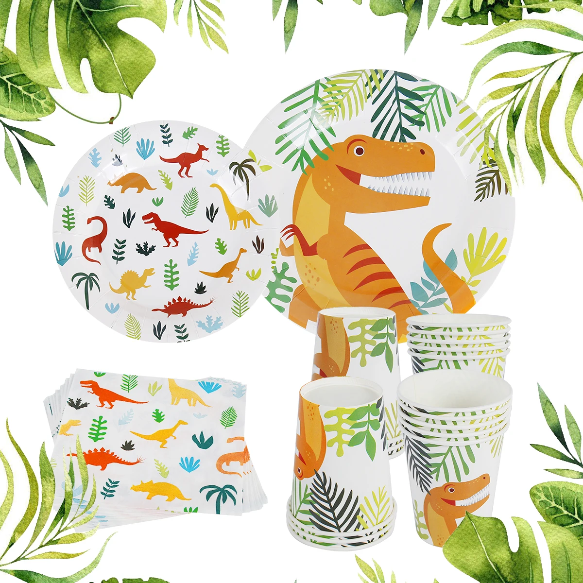Одноразовая посуда с динозавром, динозавром в джунглях, тематическая вечеринка на день рождения, украшение для детского праздника, товары для дня рождения