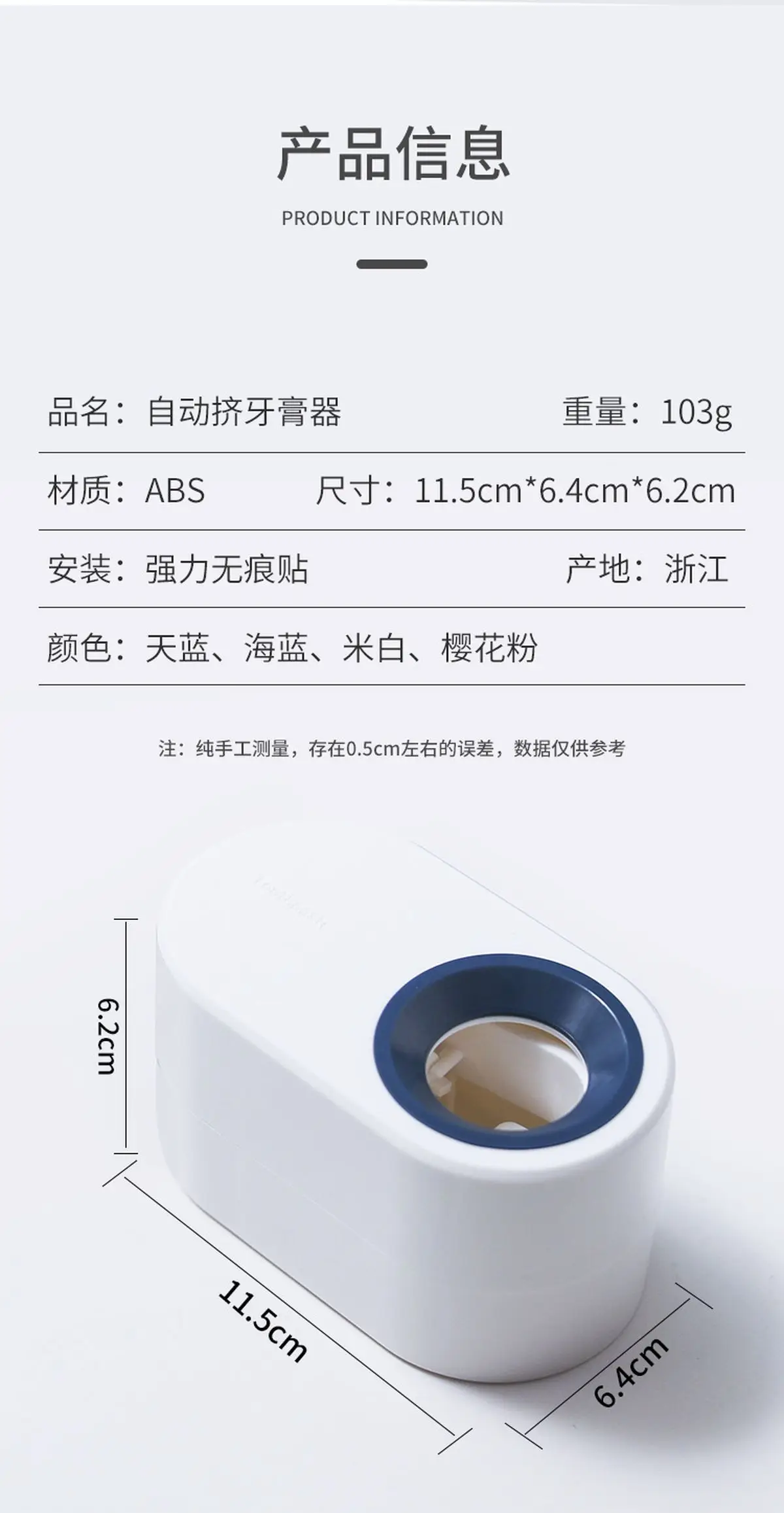 1. Соковыжималка для зубной пасты, мягко нажмите, зубная паста количественная экструзия, может контролировать количество в соответствии с силой2. Гибкий резьбовой интерфейс, легко устанавливается, не свободно3. Съемный дизайн, легко моется, избегая использования внутренней грязи для долгосрочного использования4. Сильная несущая способность, прочный и не легко упасть5. Может использоваться как взрослыми, так и детьми6. U-образный дизайн дна: зубная щетка может быть подвешена7. Подходит для семейного использования, не только хорошо выглядит, но и очень чистоЦвет: белый, розовый, темно-синий, небесно-голубойРазмер: с держателем зубной щетки: 15*7*7,9 смБез держатель для зубных щеток: 11,5*6,4*6,2 смУпаковка: 1 шт.Примечания: в первый раз, когда вы используете его, вам нужно сжать зубную пасту, чтобы заполнить зубную пасту в насосе. Затем нажмите кнопку сжатия еще несколько раз, чтобы выпустить излишки воздуха из насоса, а затем вы можете использовать его интерфейс.1. Замеры товара, лежащего на таблице, могут вызвать небольшую разницу2. Реальный цвет товара может быть s светильник iy отличаться от изображений, размещенных на веб-сайте, по причине многих факторов, таких как яркость вашего монитора и светильник яркость при фотосъемкеСпасибо за понимание