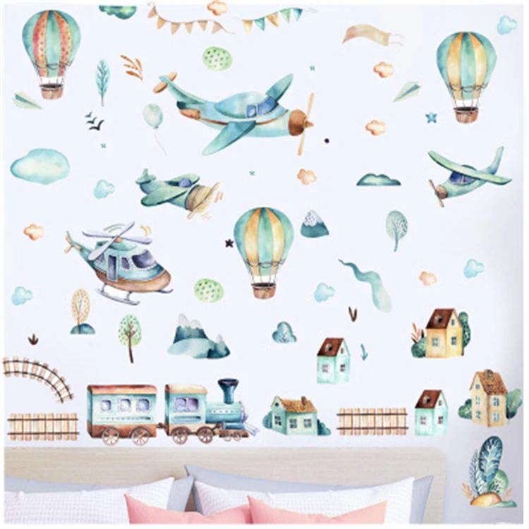 Ручная роспись акварель мультфильм горячий воздух наклейки на воздушные шары для детской комнаты самолет наклейки на стену поезд украшение для детской