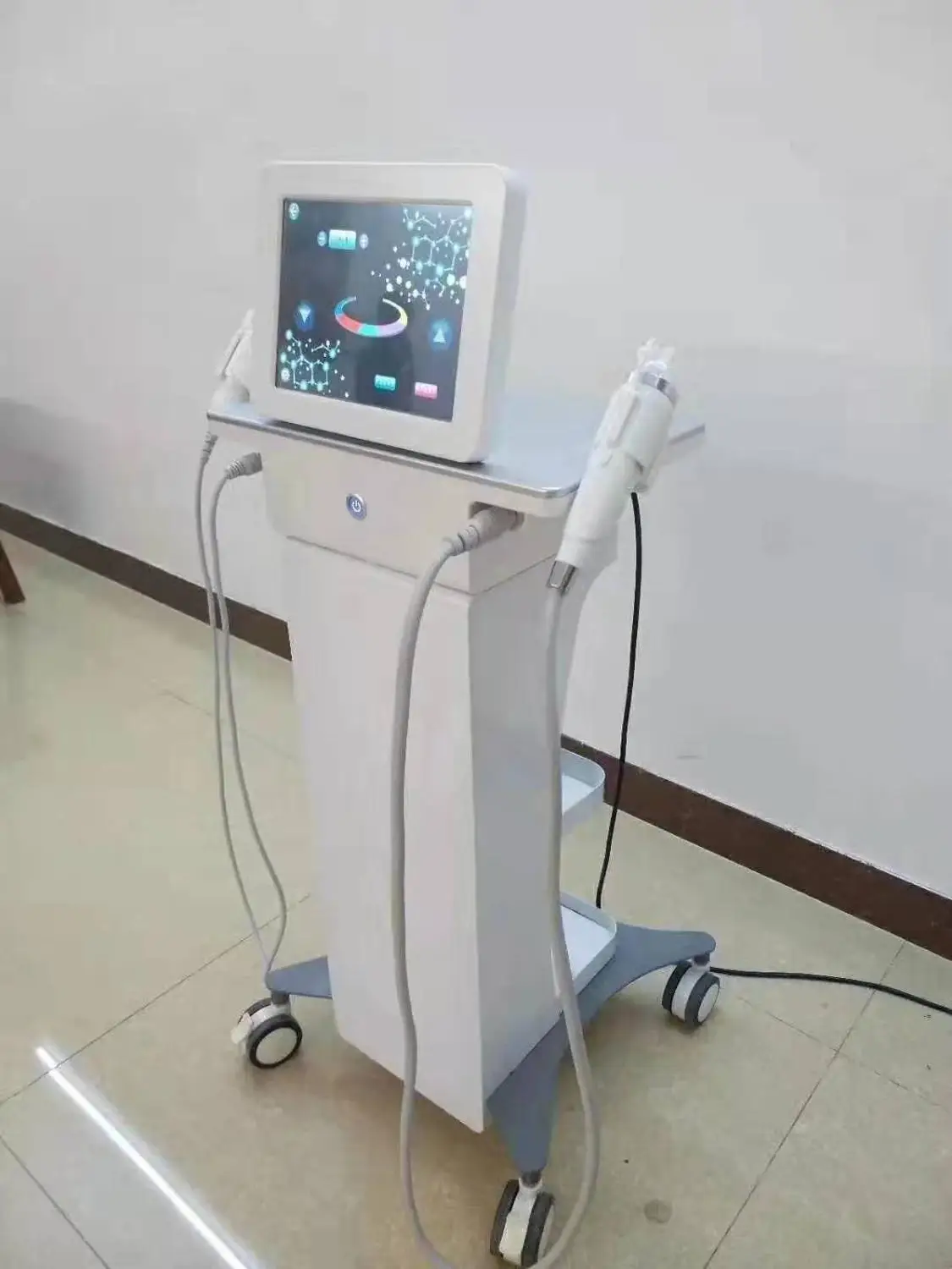 У данной машинки 2 ручки.RF фракционная микроигольная ручка и холодная ручка.Функции холодной ручки сужают поры, подтягивают кожу, успокаивают кожу, снимают усталость.