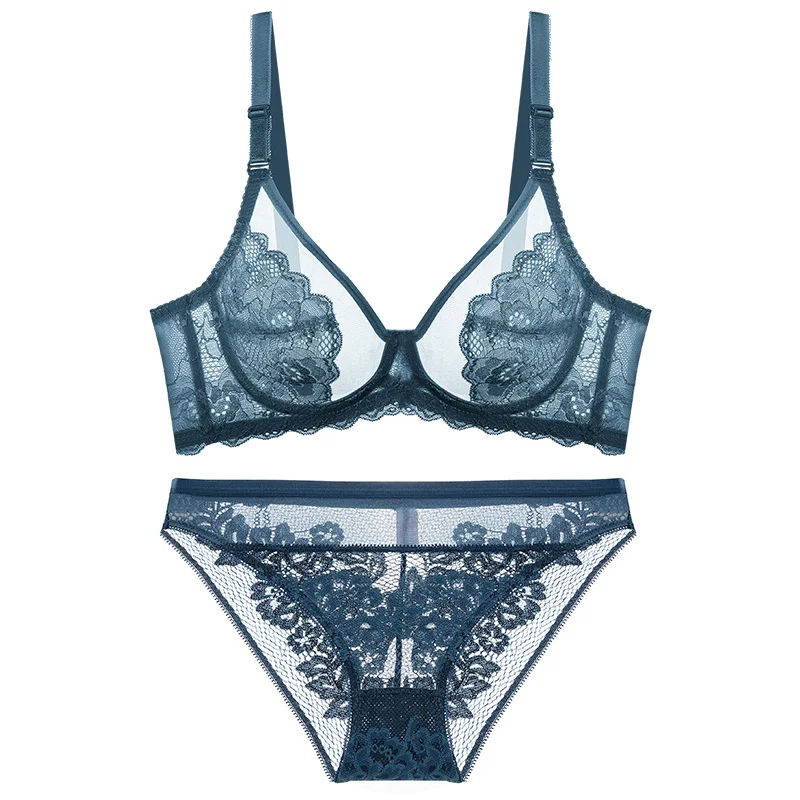 Комплект женского кружевного нижнего белья Meizimei, прозрачный, с рюшами, черного цвета