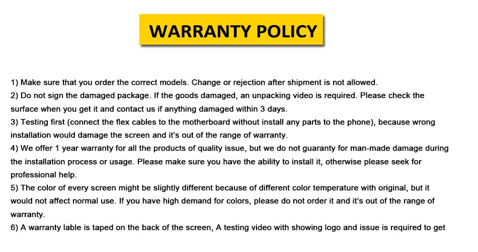 100% QC tested before shippingNo dead pixels