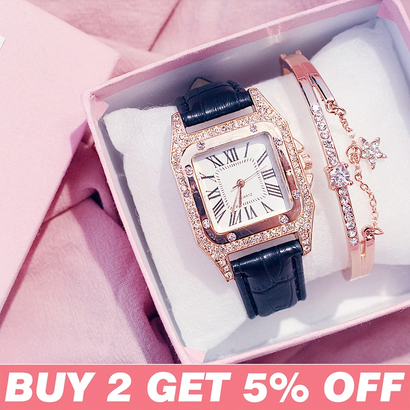 Reloj Mujer женские часы с бриллиантами Звездное квадратный цифербл...