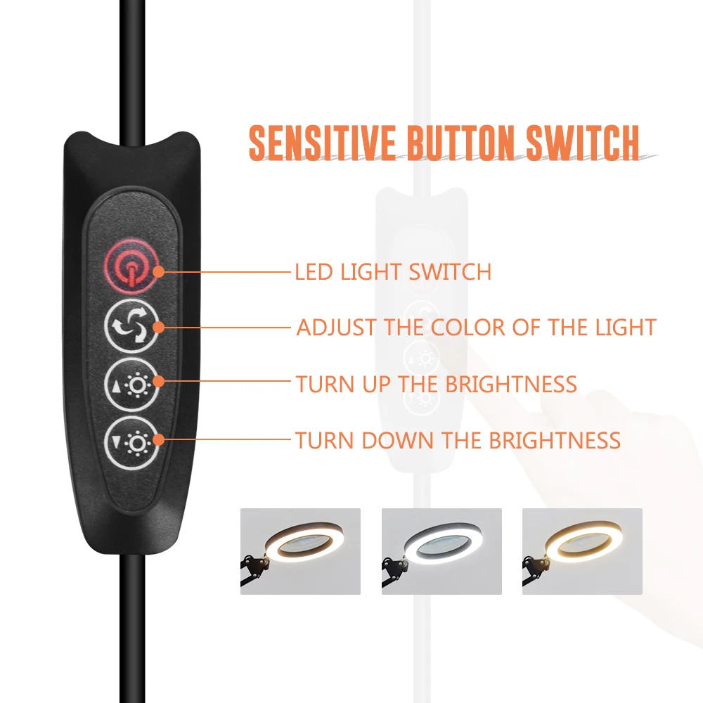 Светодиодная настольная лампа с затемнением, приглушаемый светильник для чтения с 5X увеличительным стеклом, прибор для сварки, настольные лампы для чтения, 8 Вт, 3 цвета