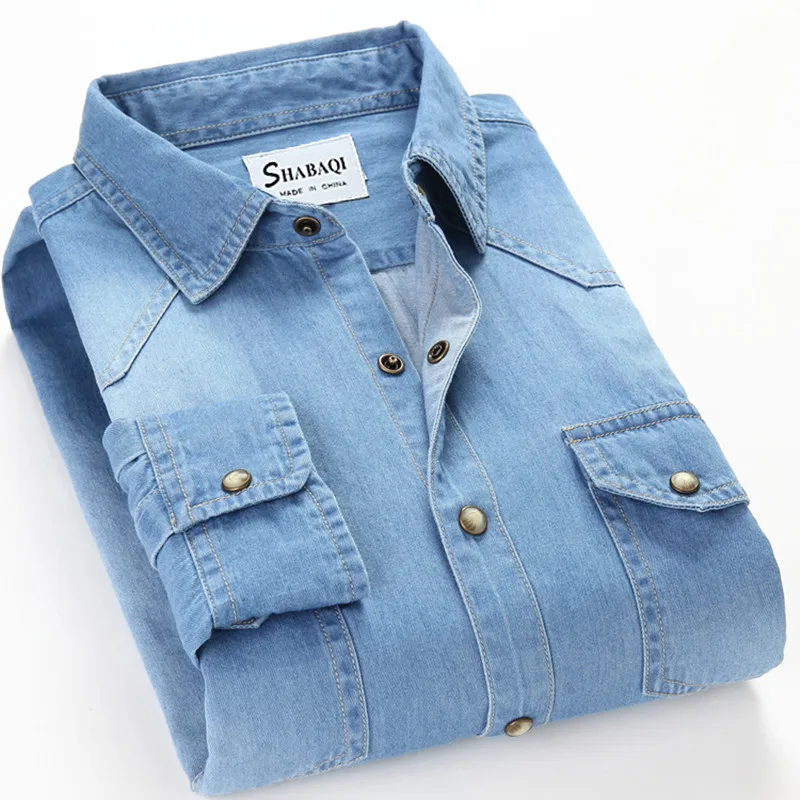 Рубашка мужская из денима, с двумя карманами, на пуговицах, весна 2021