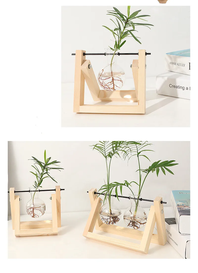 Стеклянная ваза для растений, гидропоника, прозрачная ваза, деревян...