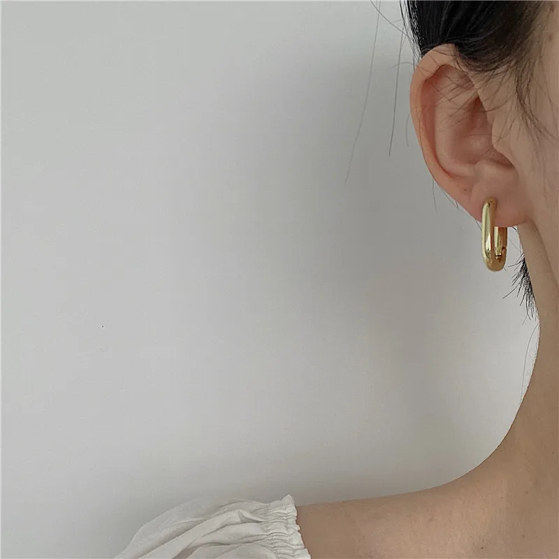 Минималистичные серьги-гвоздики в форме о, очаровательные женские винтажные геометрические серьги ручной работы с эллипсом, вечерние аксессуары, ювелирное изделие, подарок