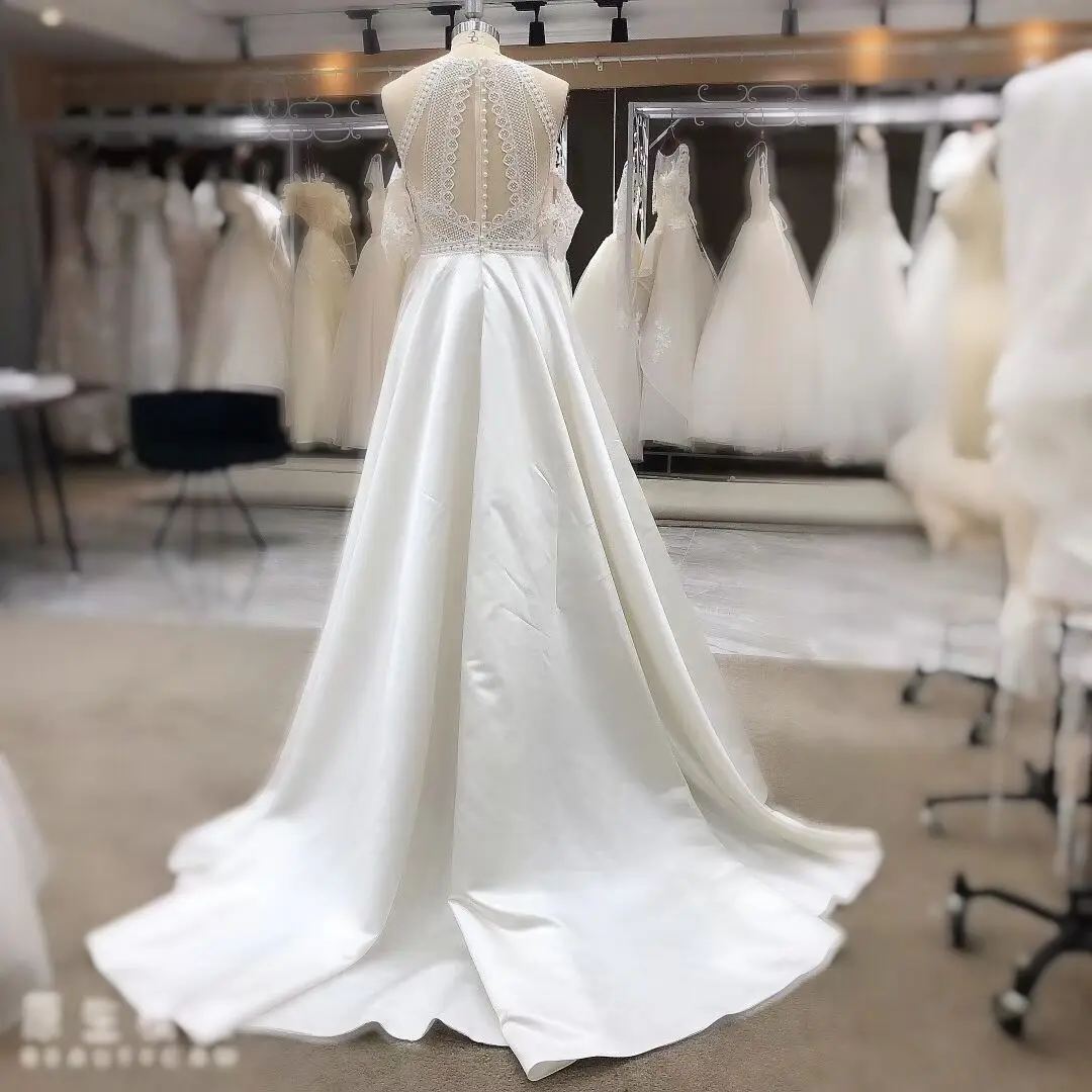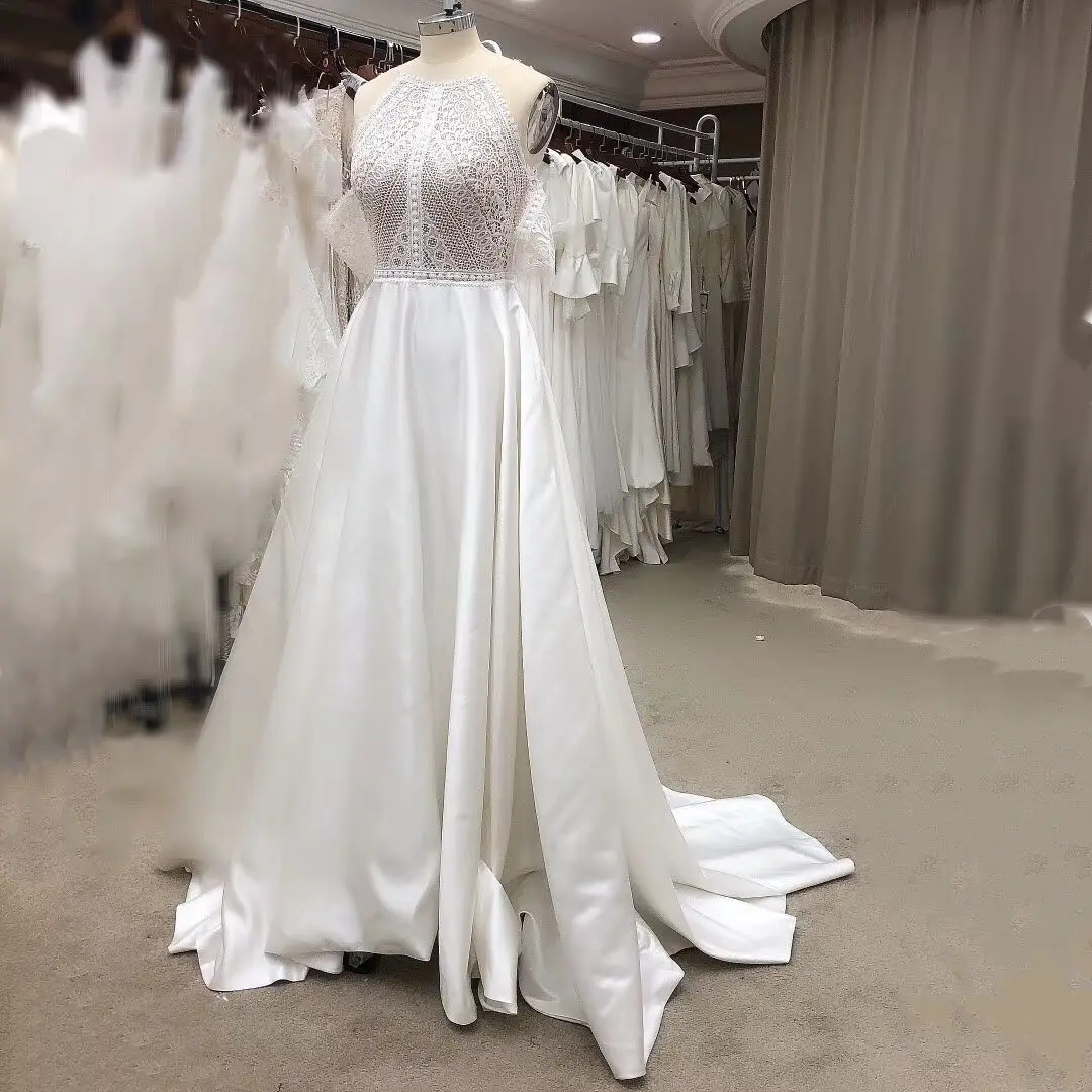 Богемные Свадебные платья кружевные Сатиновые Свадебные платья Пляж...