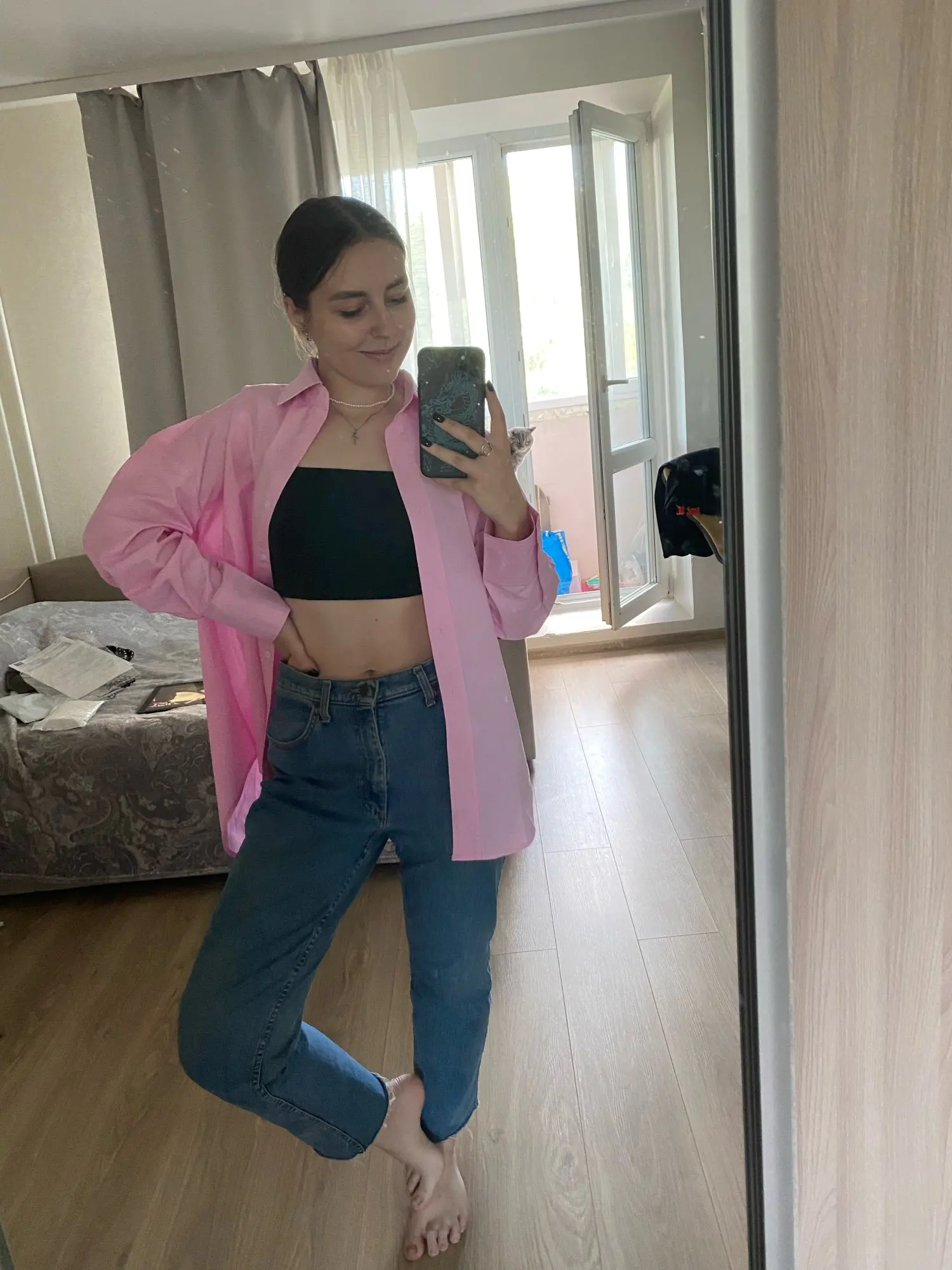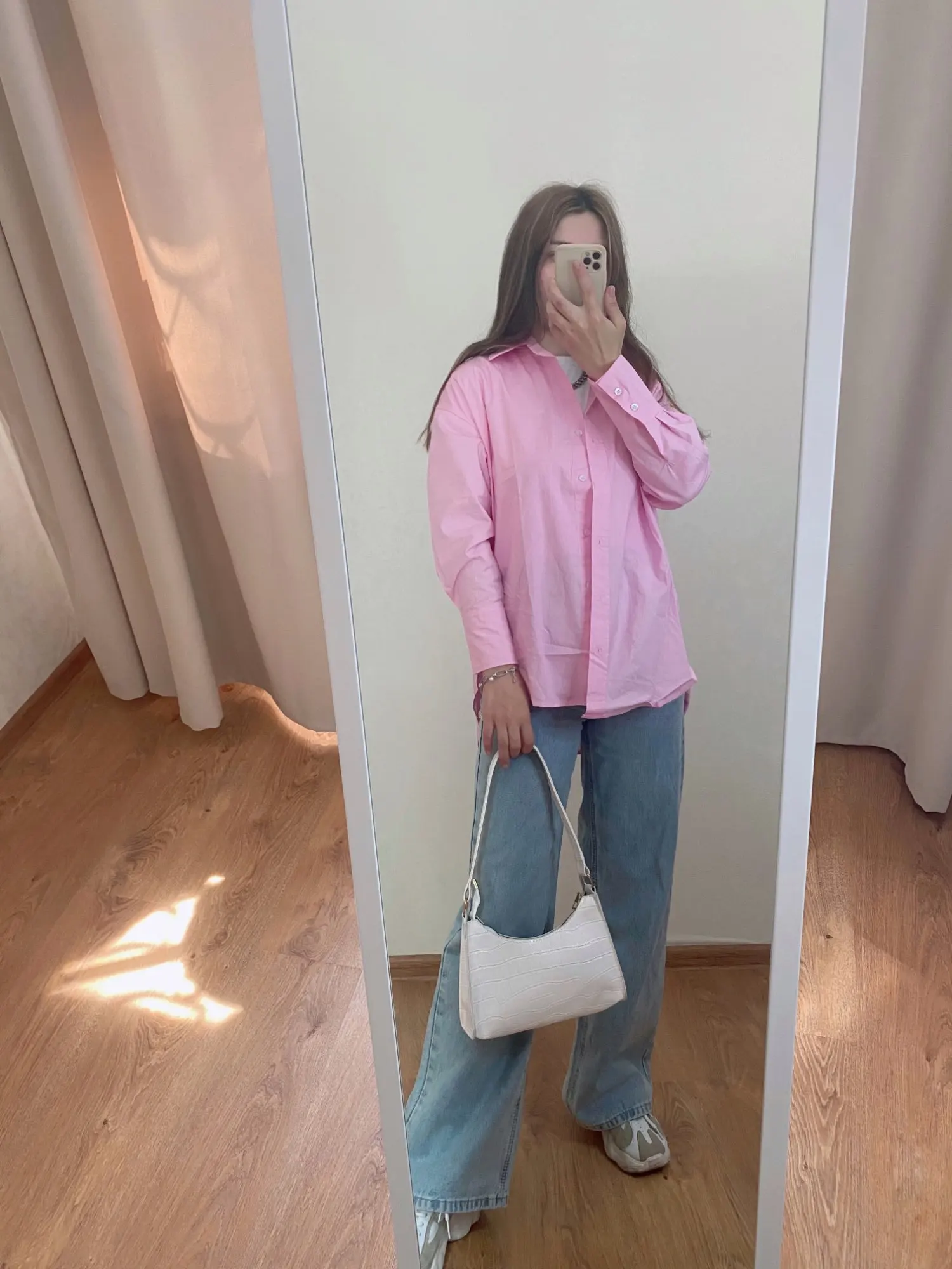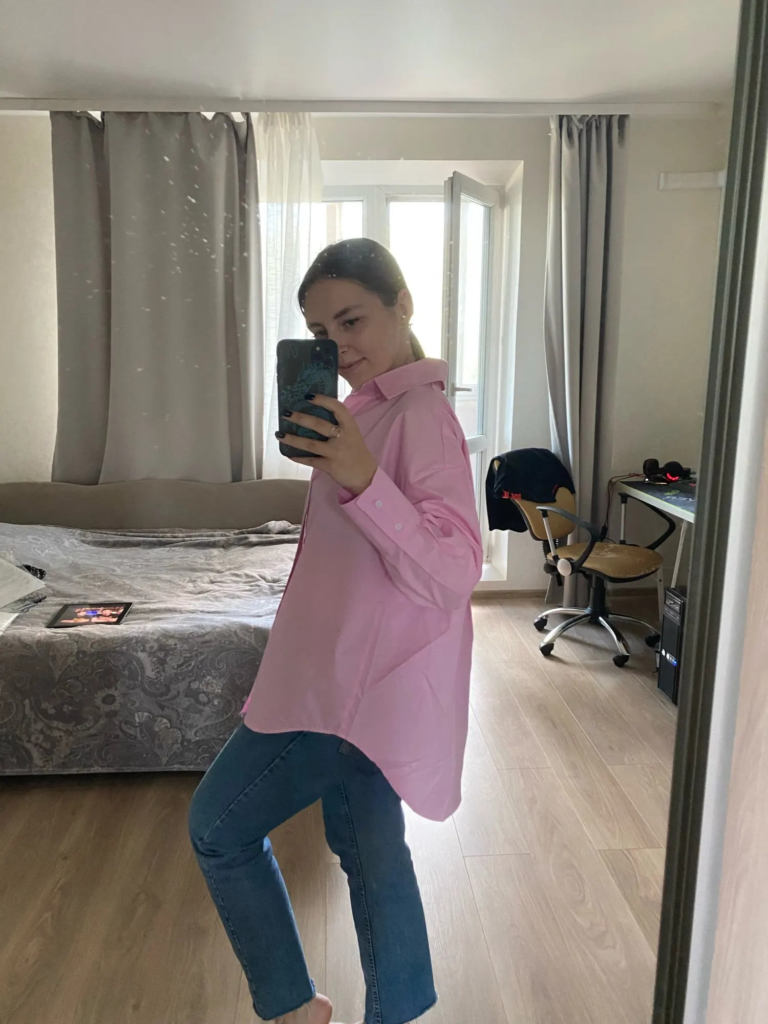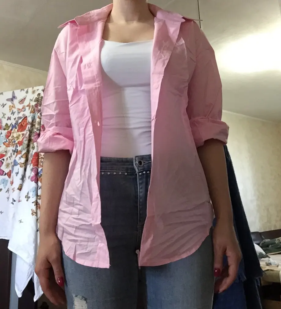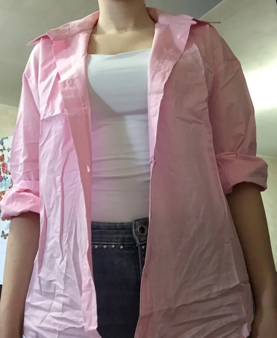 Идеальная рубашка на весну-лето. Рубашка нежно-розового цвета, ровные швы, в целом неплохого качества. Заказала М на мой S-M, сидит как небольшой oversized, но это то, что мне надо) Единственное, на рост 166 см рукава чуть коротковаты, но это не критично