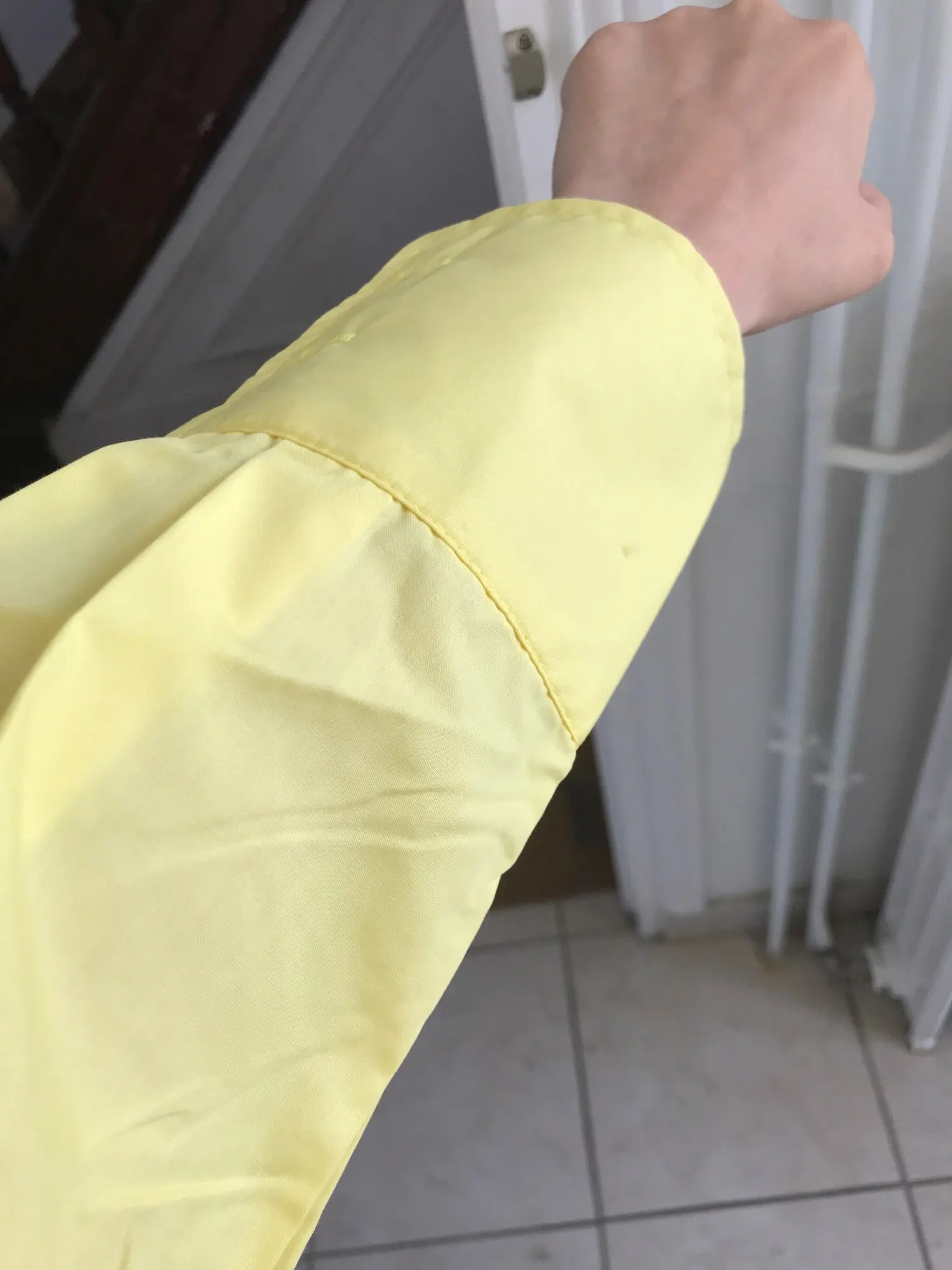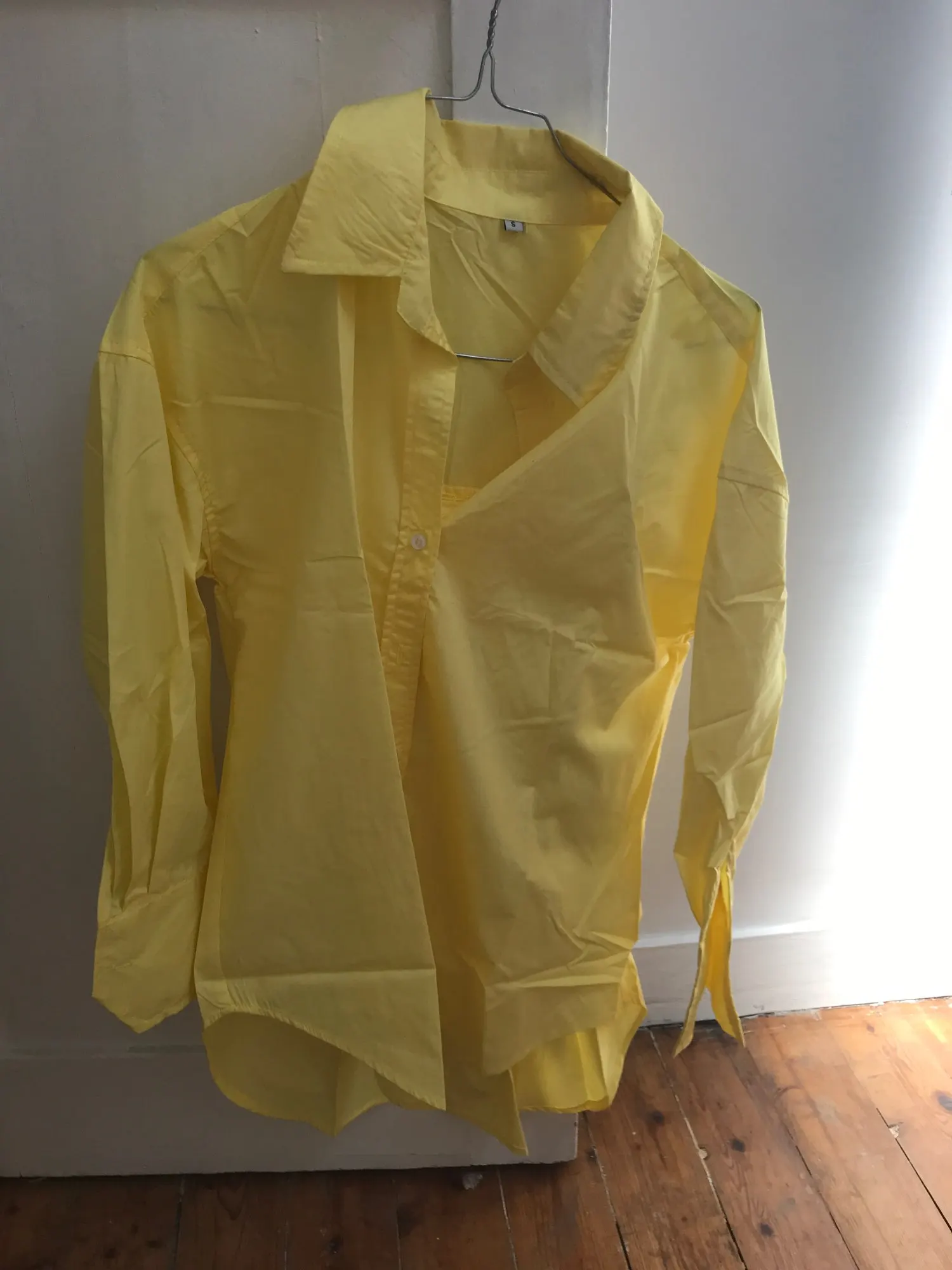 Как на фото! Цвет желтого очень красивый. Я взял S (я делаю XS), и рукава не такие длинные, но это не имеет значения. Это прозрачно, но с белым верхом это хорошо. Она прибыла через 15 дней во Францию. Качество на высшем уровне!