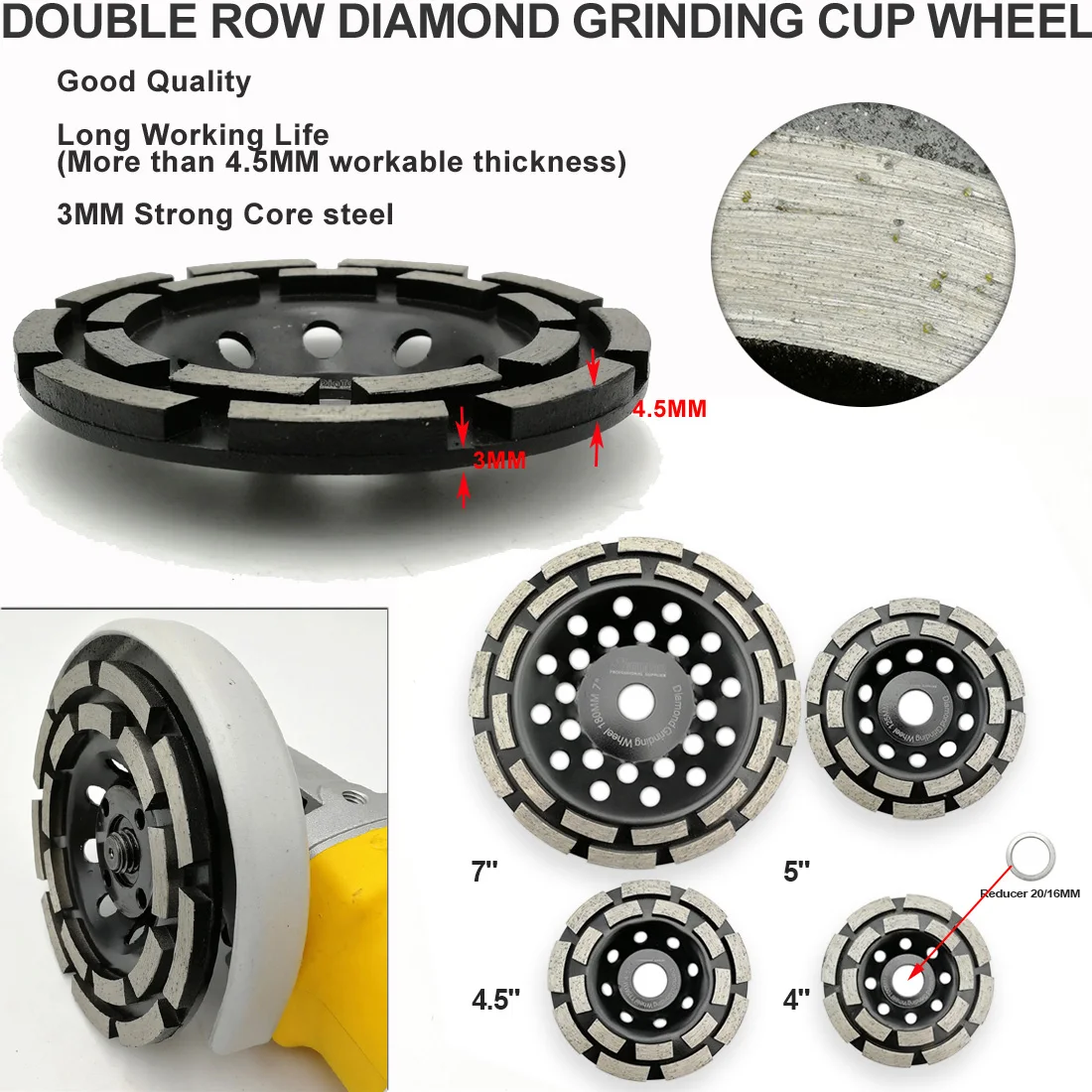 SHDIATOOL 4,5 дюймов алмазное Двухрядное колесо чашки для бетона и ...