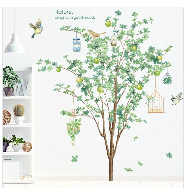 Наклейка на стену в скандинавском стиле с изображением лимона дерева для гостиной, спальни, дивана, телевизора, декор в виде птичьей клетки, Наклейки на стены из ПВХ для домашнего декора, наклейка