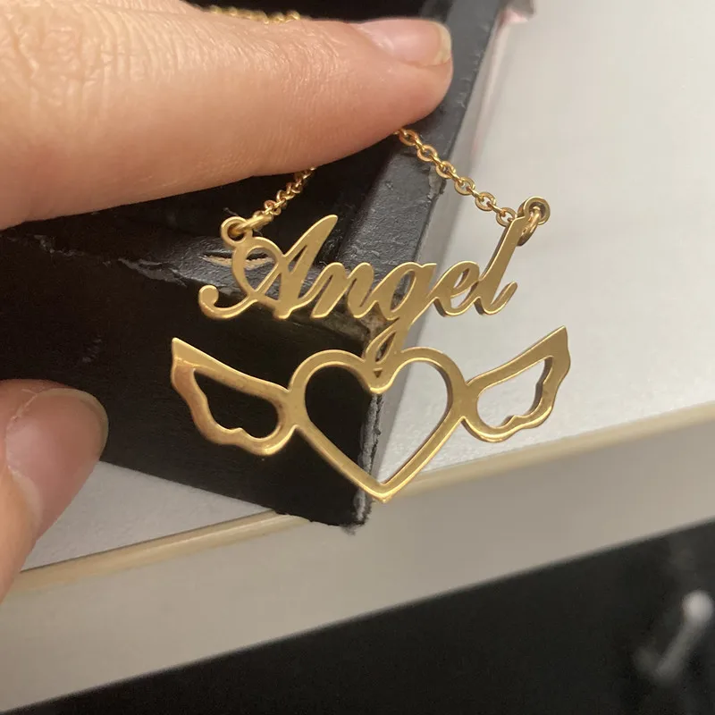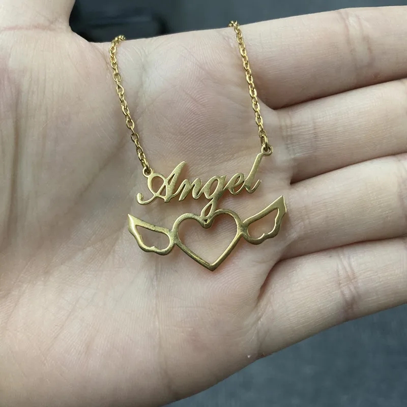Золотистый чокер ручной работы с именем влюбленного сердца крыла из нержавеющей стали