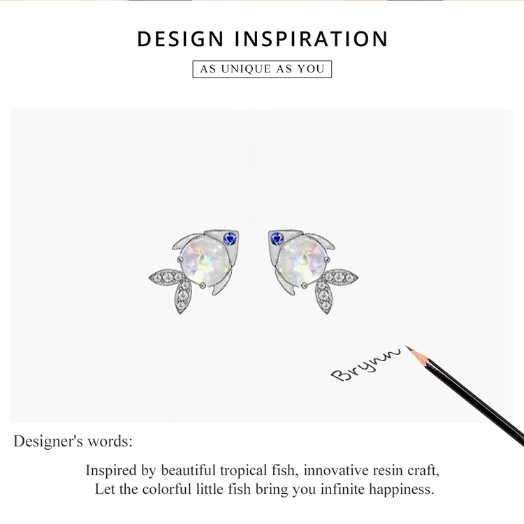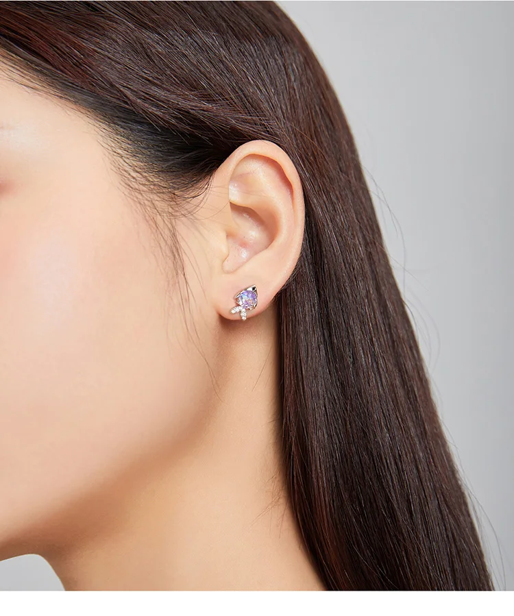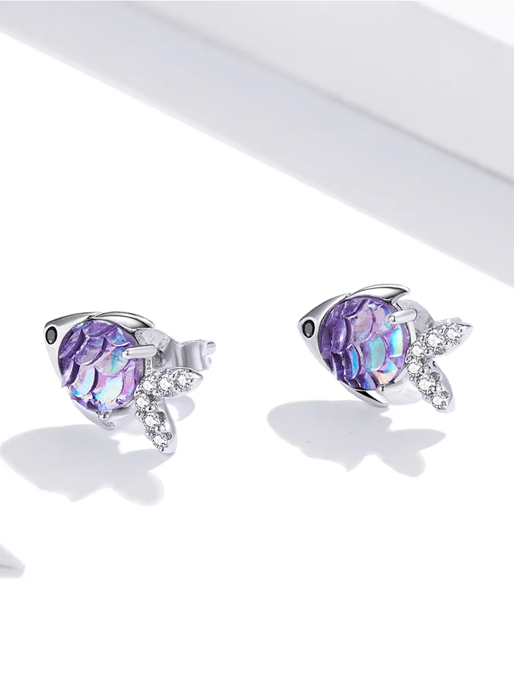 Серьги-гвоздики женские из серебра 100% пробы с тропическими рыбкам...
